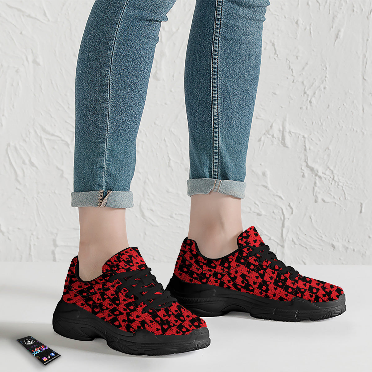 Looking for unique chunky shoes? Check out our Playing Cards Black Red Print Pattern Black Chunky Shoes at Grizzshopping. Our chunky shoes are handcrafted to the highest quality standards that custom made for you