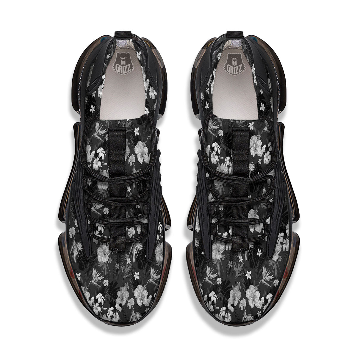 Plumeria Monochrome Print Pattern Black Gym Shoes
