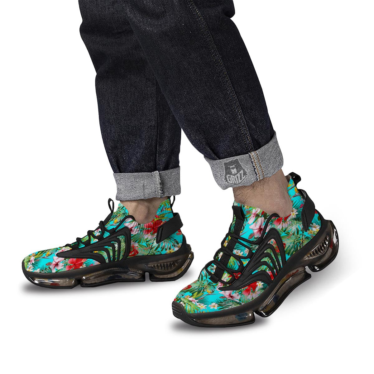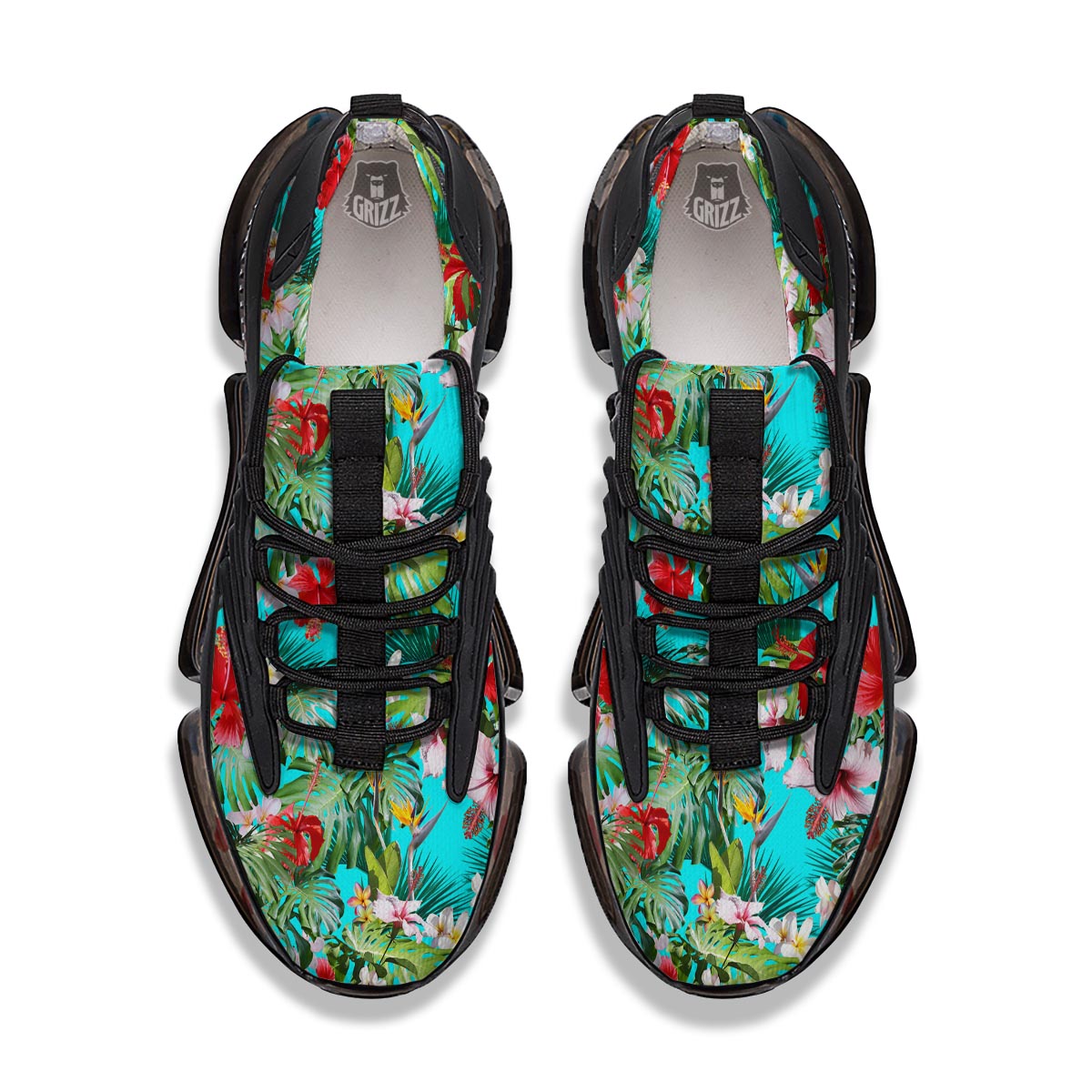 Plumeria Red Hibiscus Print Pattern Black Gym Shoes
