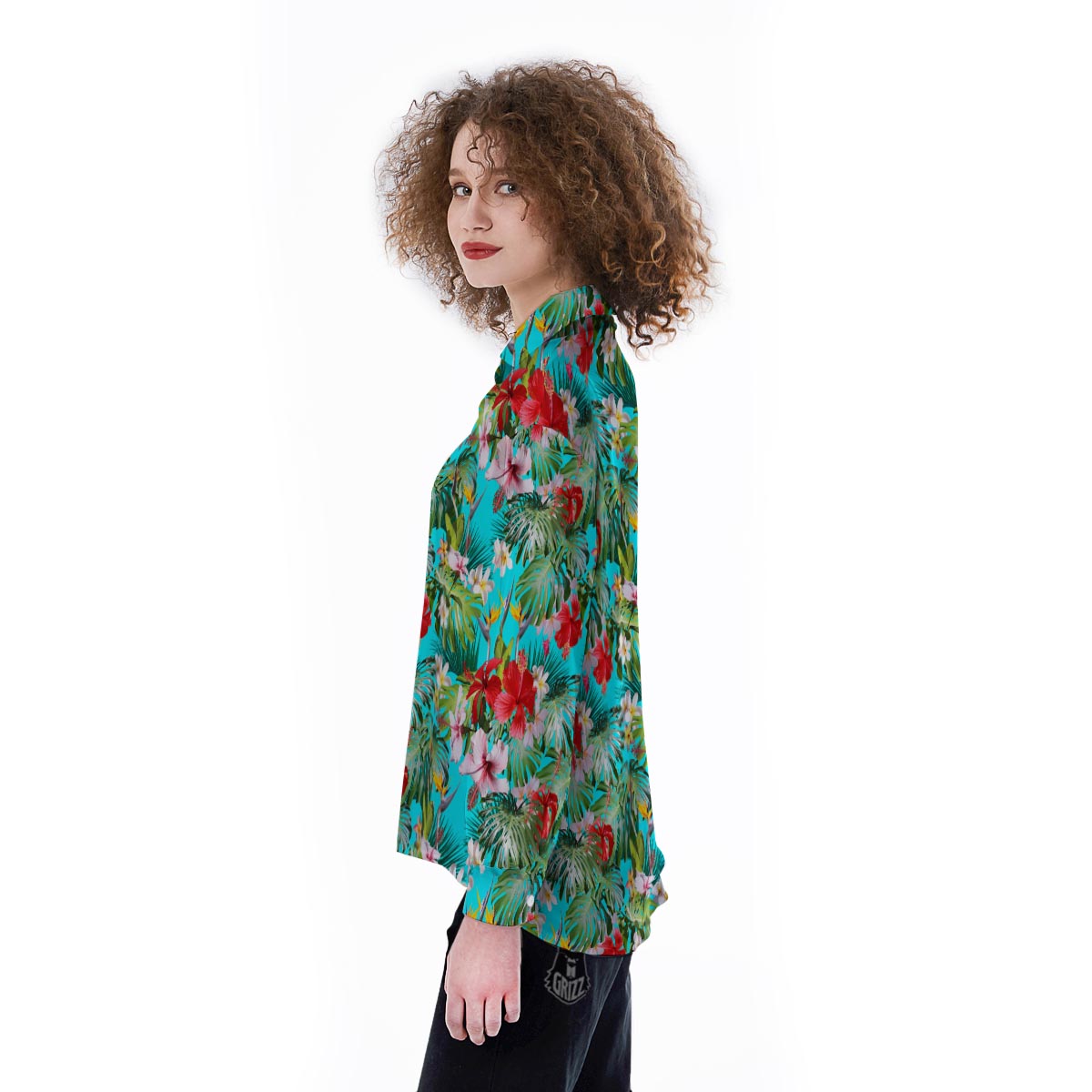 Plumeria Red Hibiscus Print Pattern Women's Long Sleeve Shirts