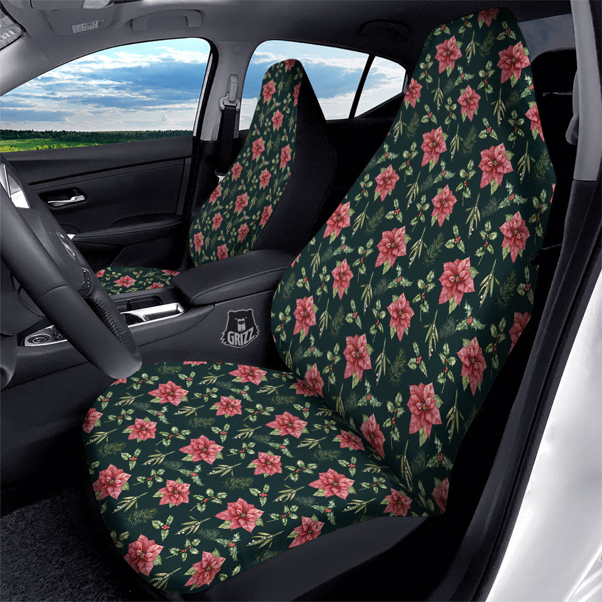 Poinsettia Christmas Watercolor Print Pattern Car Seat Covers