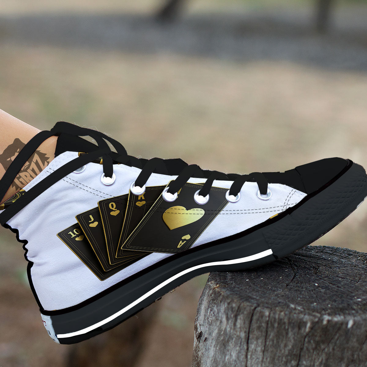 Looking for a unique shoes? Check out our Poker Cards Print Black High Top Shoes at Grizzshopping. Our shoes are handcrafted to the highest quality standards that custom made for you