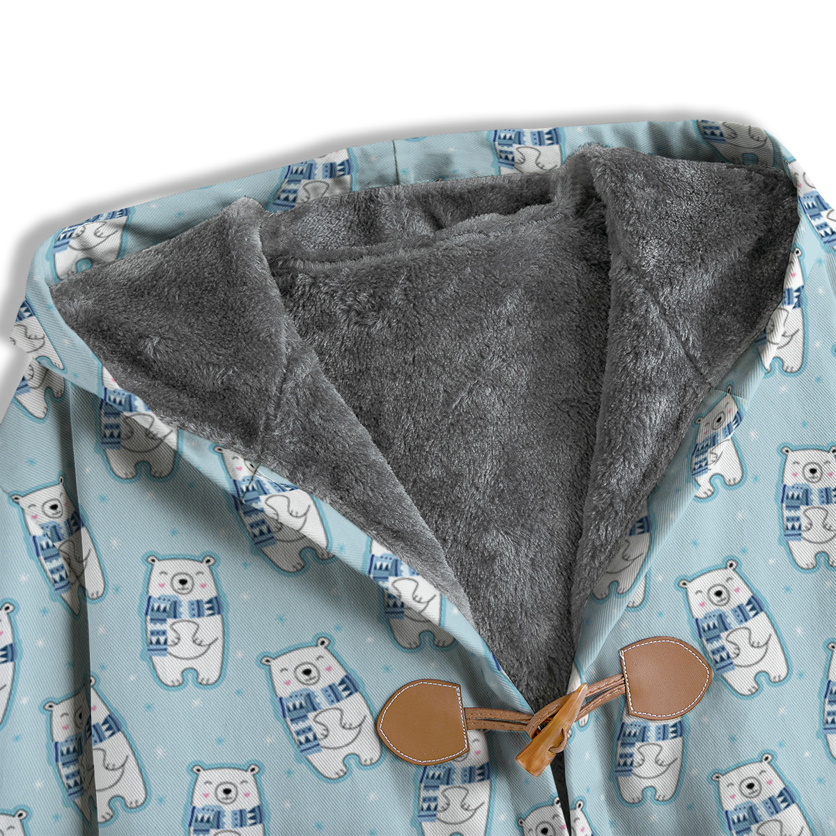 - Horn buckle, fleece, with hood