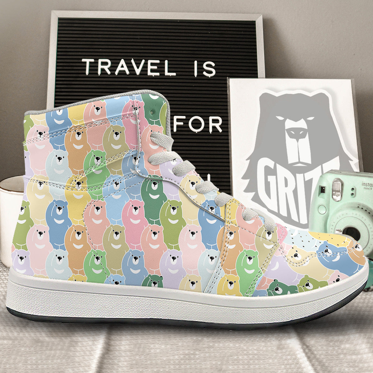 Polar Bear Pastel Print Pattern High Top Sneakers