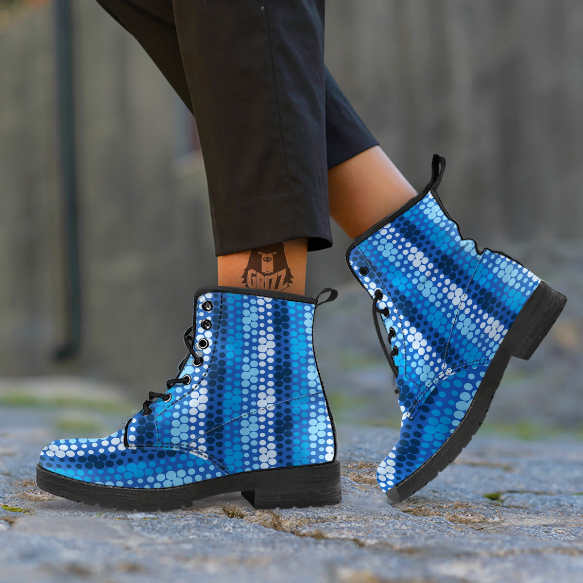 Looking for a unique Boots? Check out our Polka Dot Blue Striped Print Pattern Leather Boots at Grizzshopping. Our Boots are handcrafted to the highest quality standards that custom made for you