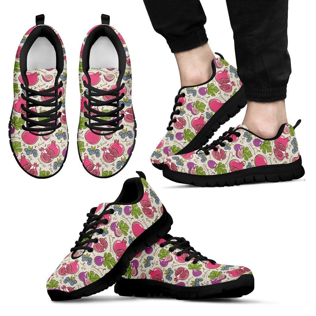 Pomegranate Fruit Pattern Print Black Sneaker Shoes For Men Women