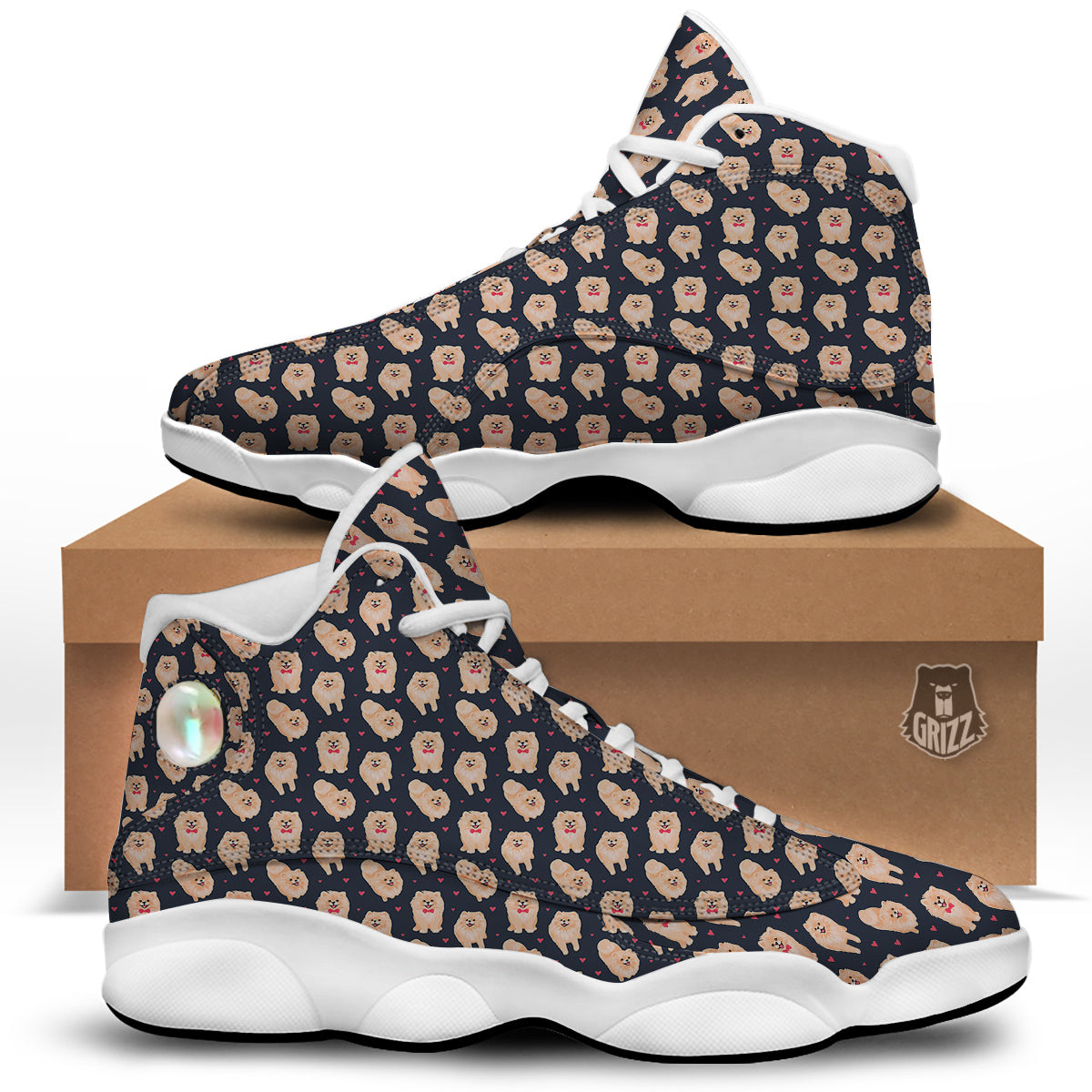 Pomeranian Cute Print Pattern White Basketball Shoes