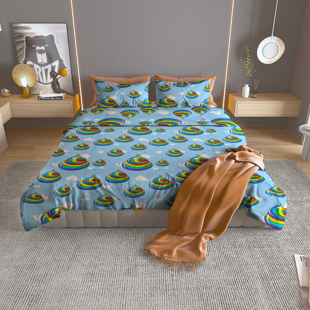 Poop Rainbow Print Pattern Duvet Cover Bedding Set