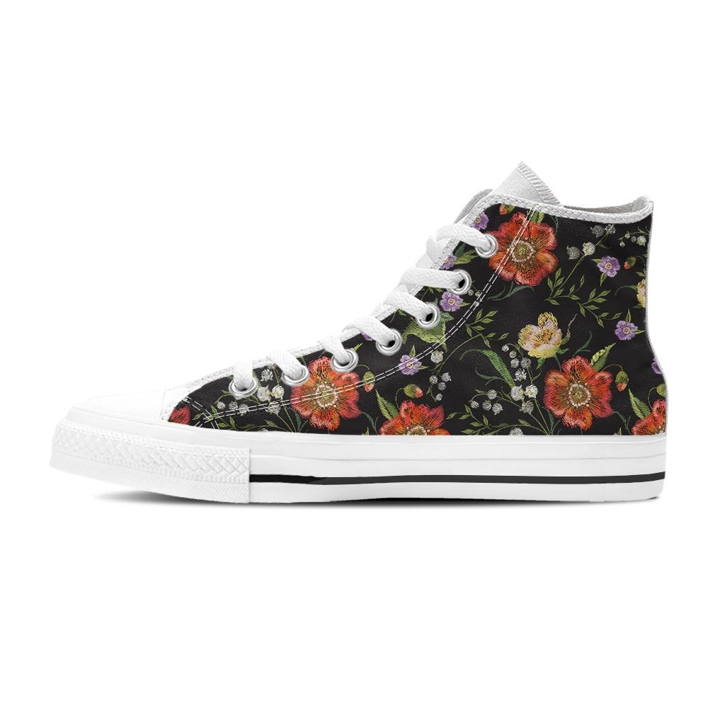 Poppy Floral Print Men's High Top Shoes