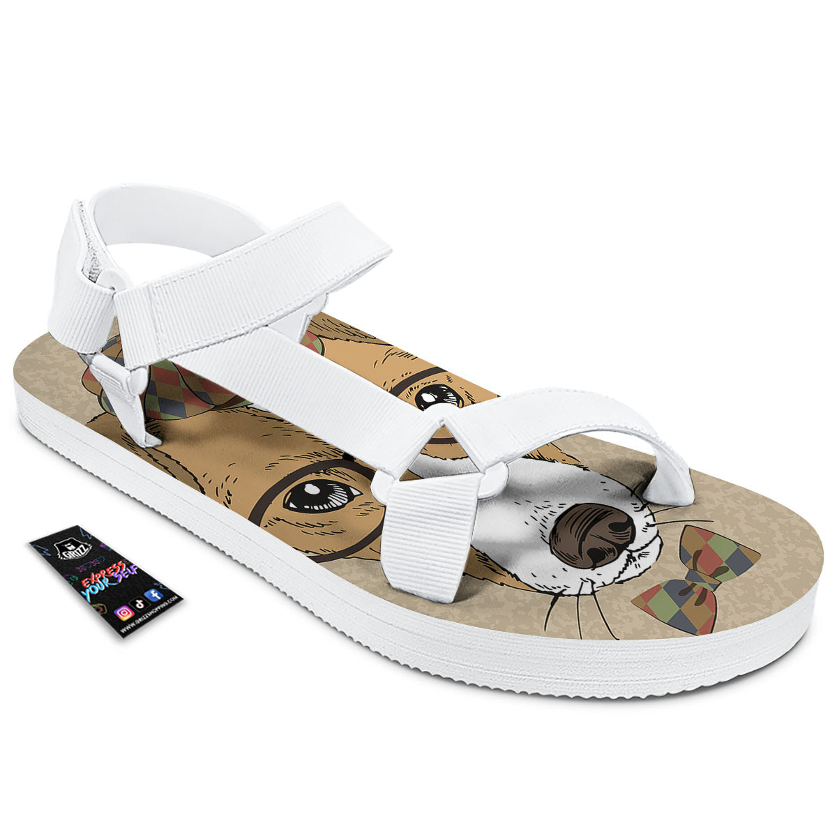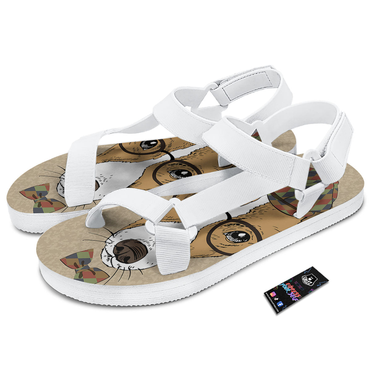 Portrait Jack Russell Terrier Print White Open Toe Sandals
