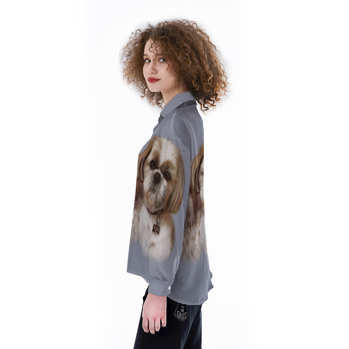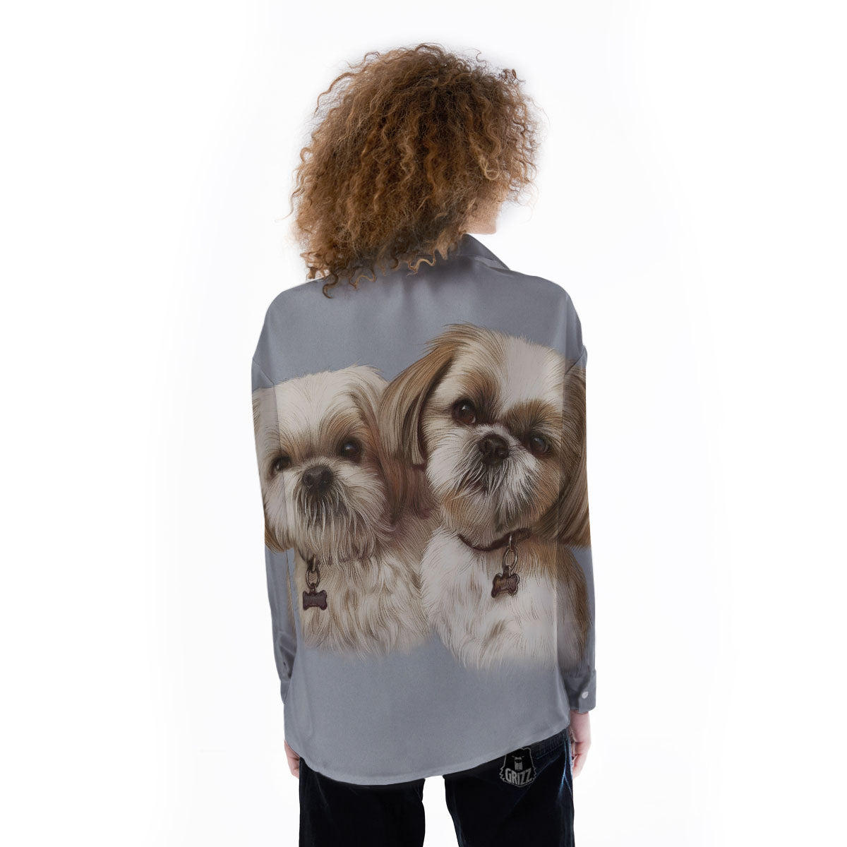 Portrait Shih Tzu Print Women's Long Sleeve Shirts