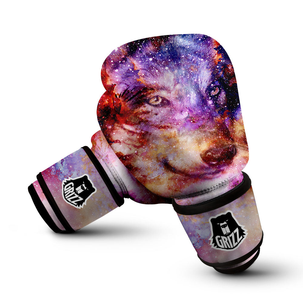 Portrait Wolf Galaxy Print Boxing Gloves