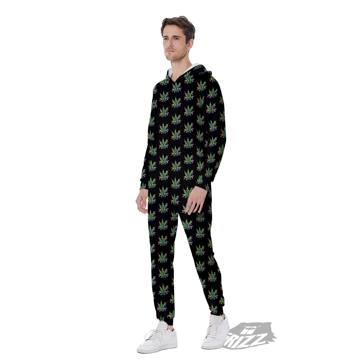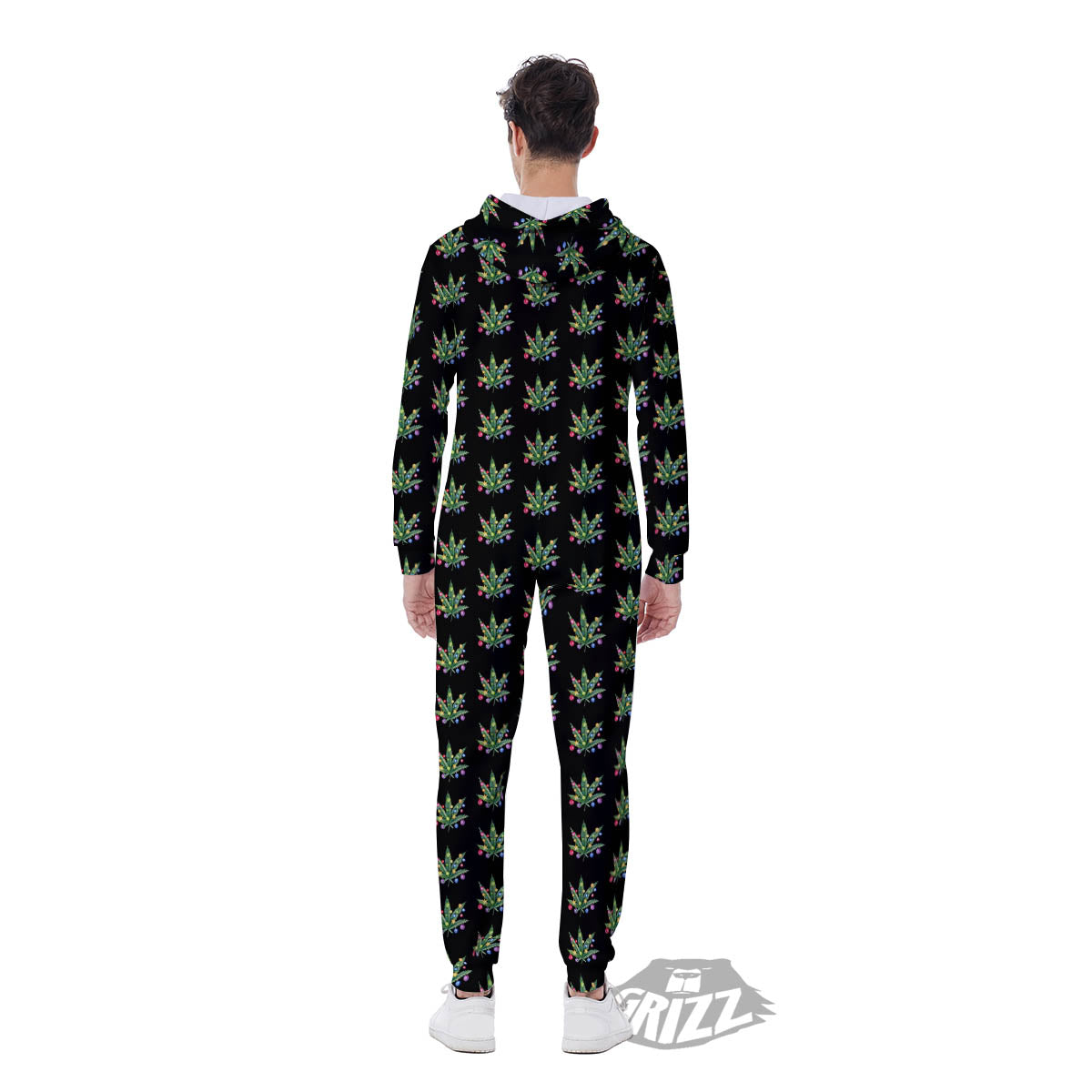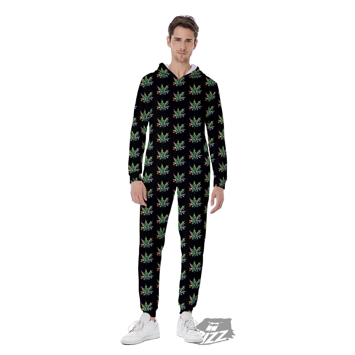 Pot Leaf Christmas Print Pattern Men's Jumpsuit