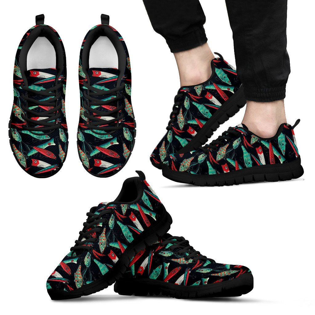 Print Pattern Bass Fishing Bait Black Sneaker Shoes For Men Women
