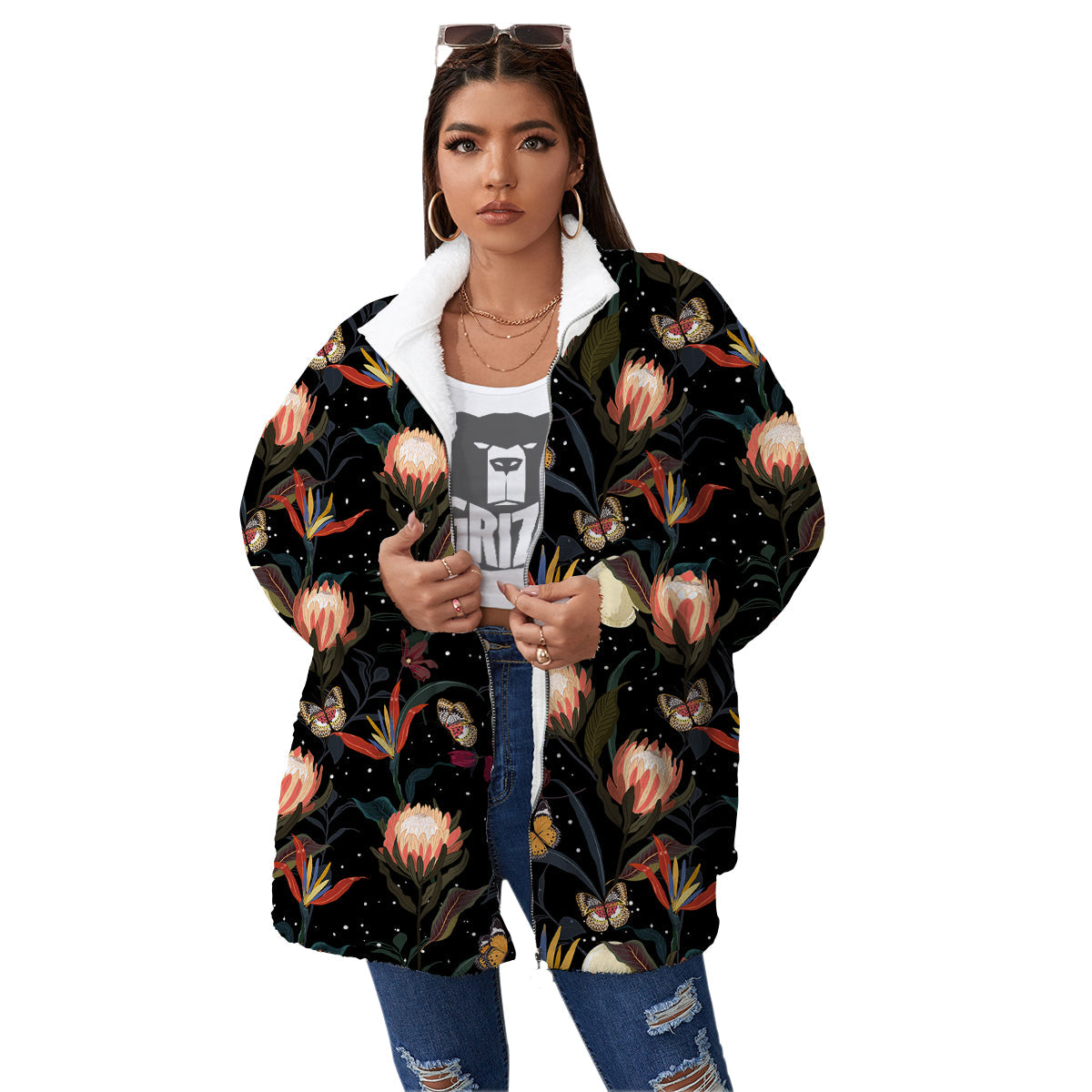Protea Watercolor Print Pattern Women's Sherpa Jacket