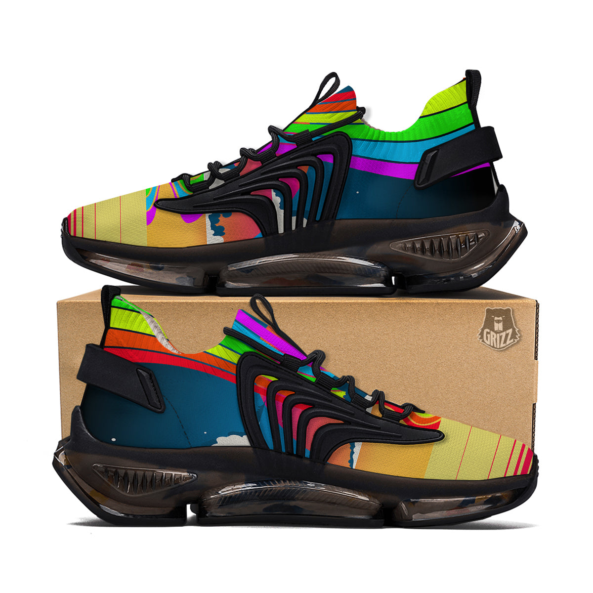 Psychedelic And Gradient Sky Rainbow Print Black Gym Shoes
