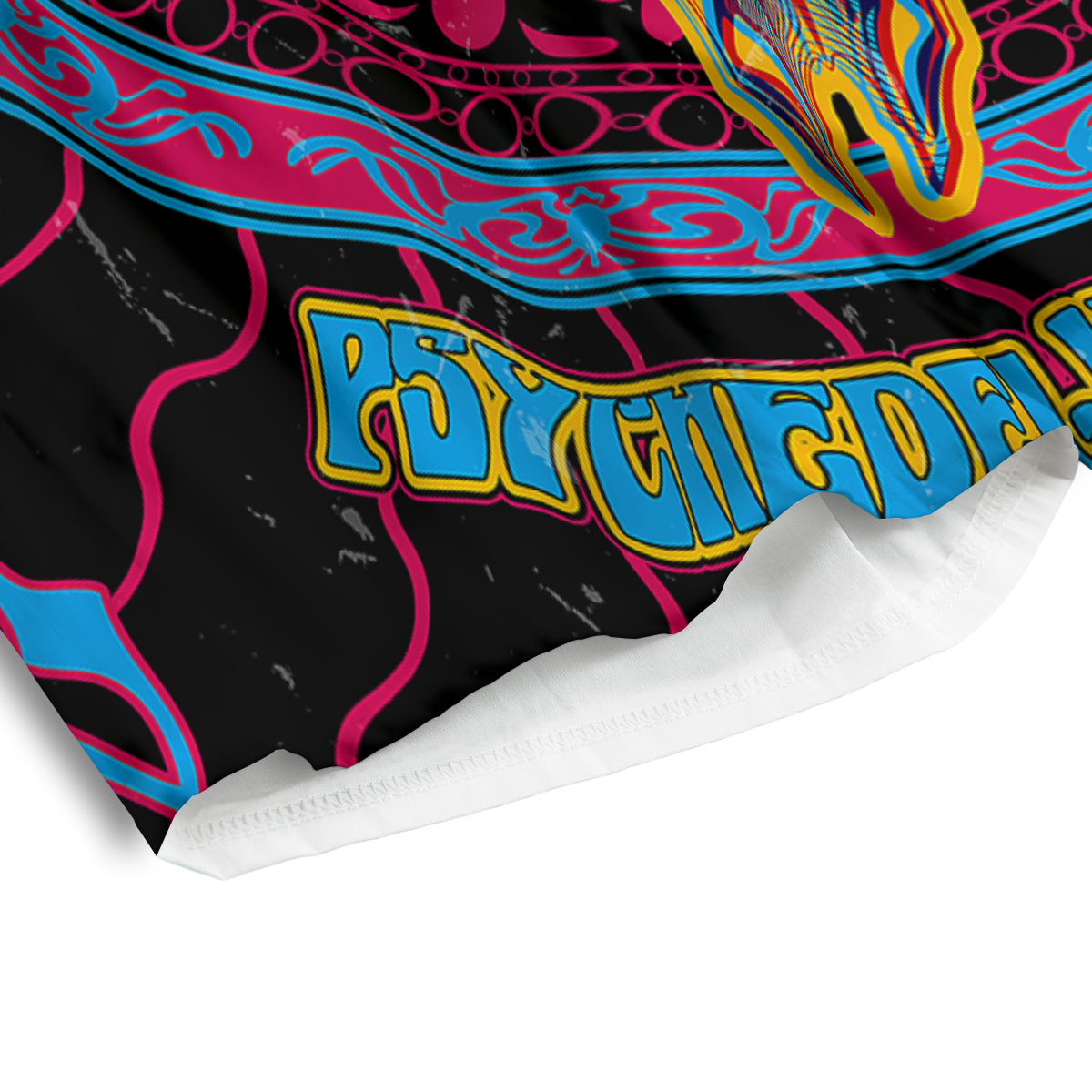Psychedelic And Ram Skull Print Men's Athletic Shorts