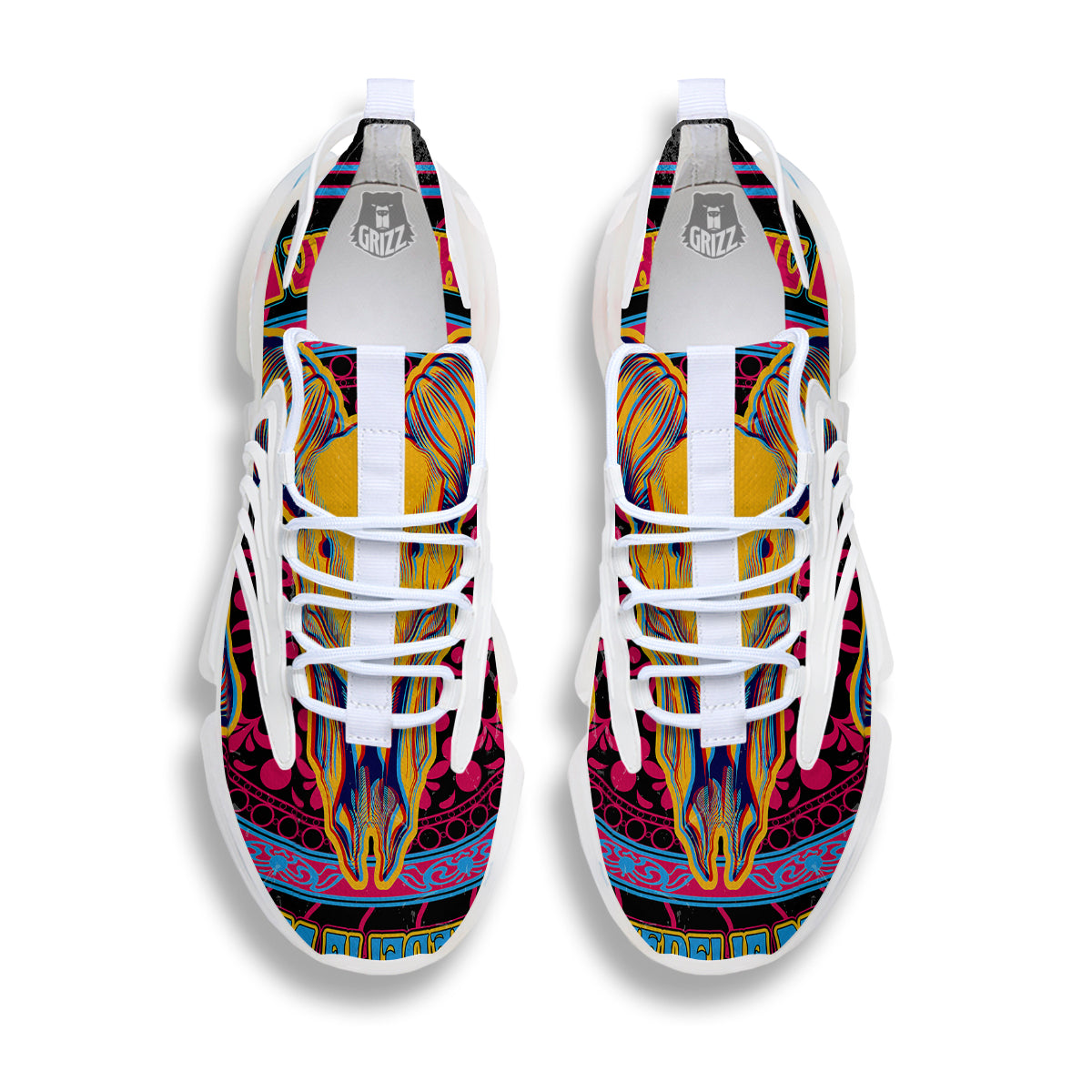 Looking for a unique gym shoes ? Check out our Psychedelic And Ram Skull Print White Gym Shoes at Grizzshopping. Our gym shoes are handcrafted to the highest quality standards that custom made for you