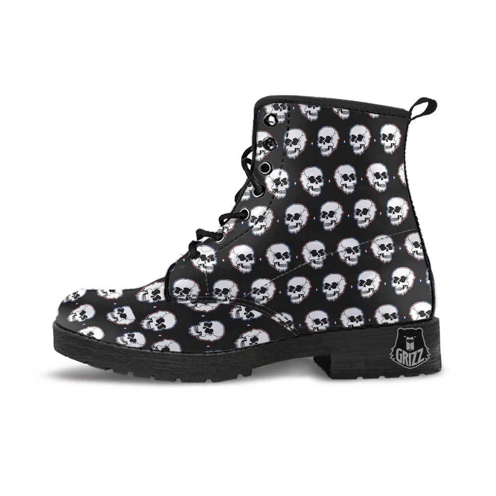 Psychedelic Skull Glitch Print Pattern Leather Boots