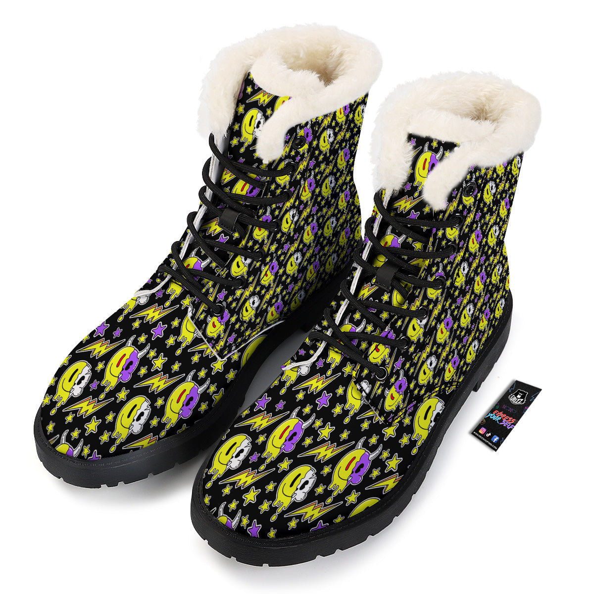 Looking for a unique boot? Check out our Psychedelic Trippy Acid Emoji Print Pattern Winter Boots at Grizzshopping. Our boot are handcrafted to the highest quality standards that custom made for you
