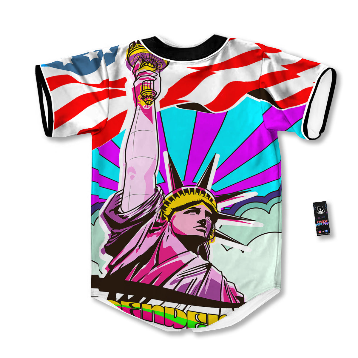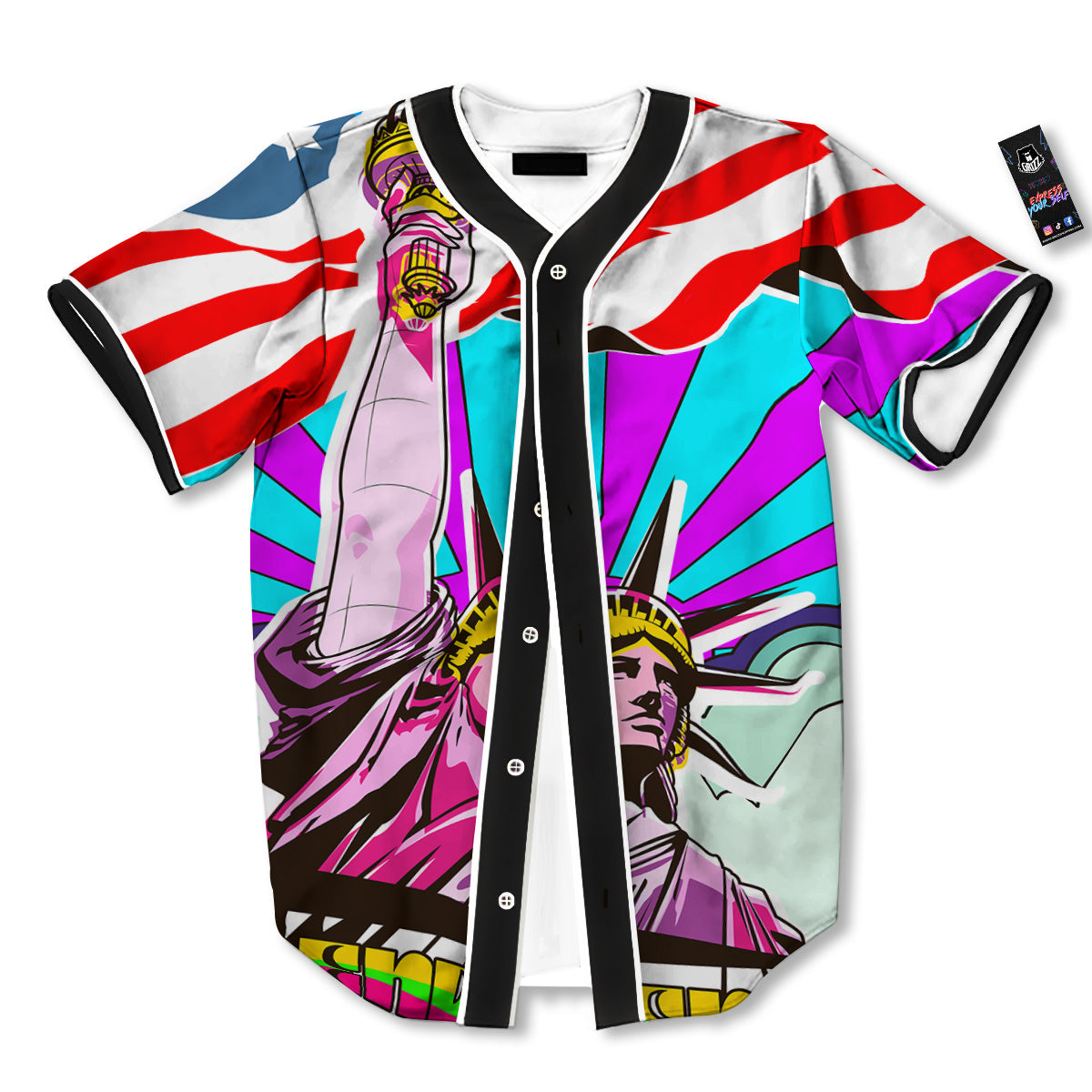 Psychedelic USA Statue of Liberty Independence Day Print Baseball Jersey
