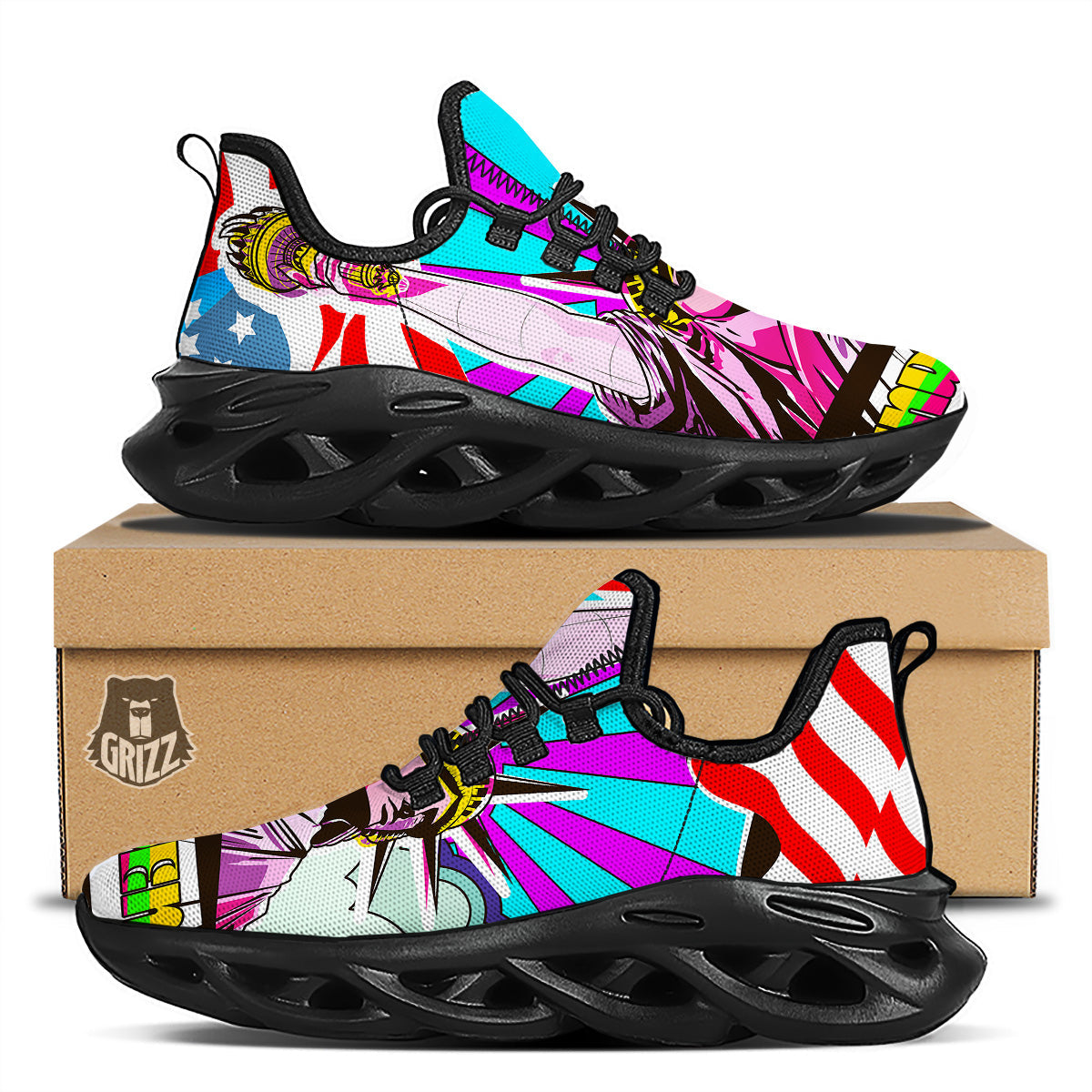 Psychedelic USA Statue of Liberty Independence Day Print Black Running Shoes