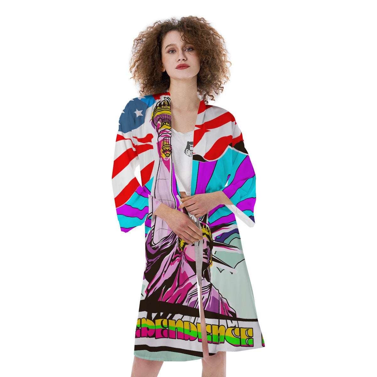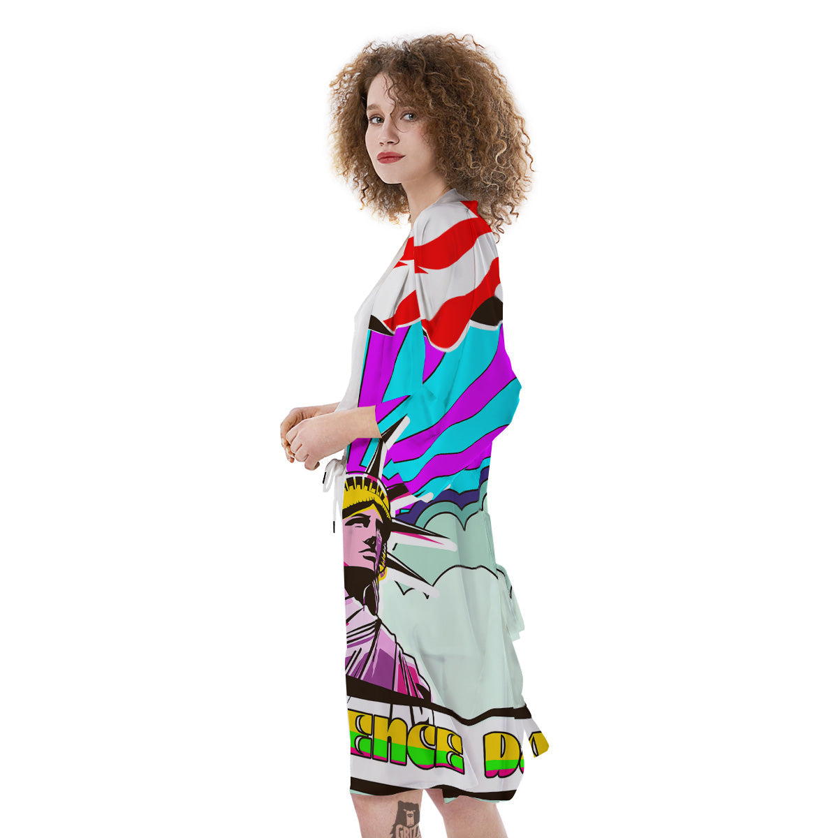 Psychedelic USA Statue of Liberty Independence Day Print Kimono