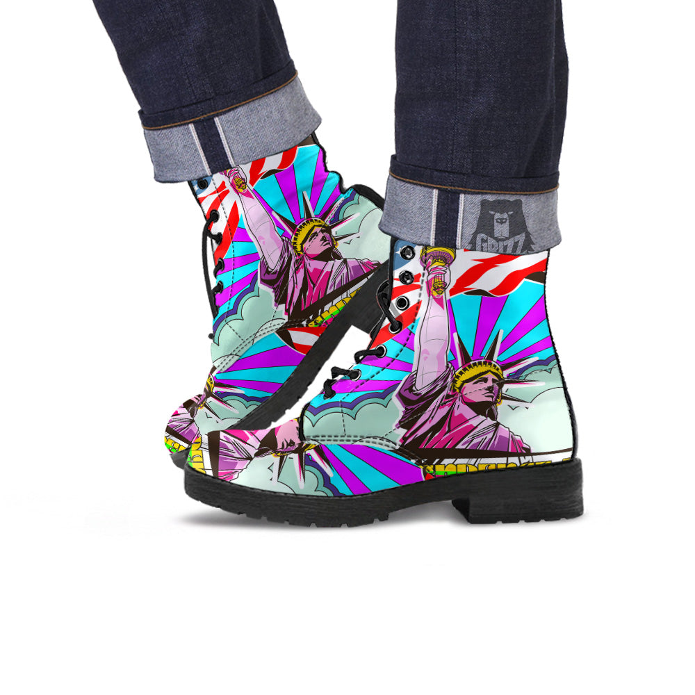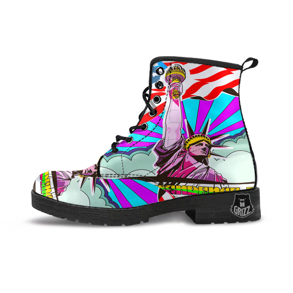 Psychedelic USA Statue of Liberty Independence Day Print Leather Boots