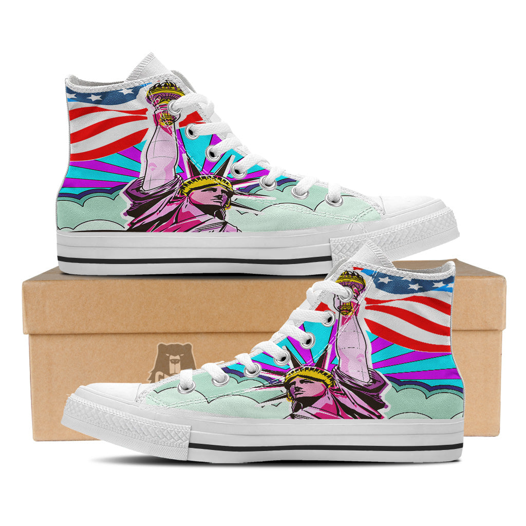 Looking for a unique shoes? Check out our Psychedelic USA Statue of Liberty Independence Day Print White High Top Shoes at Grizzshopping. Our shoes are handcrafted to the highest quality standards that custom made for you