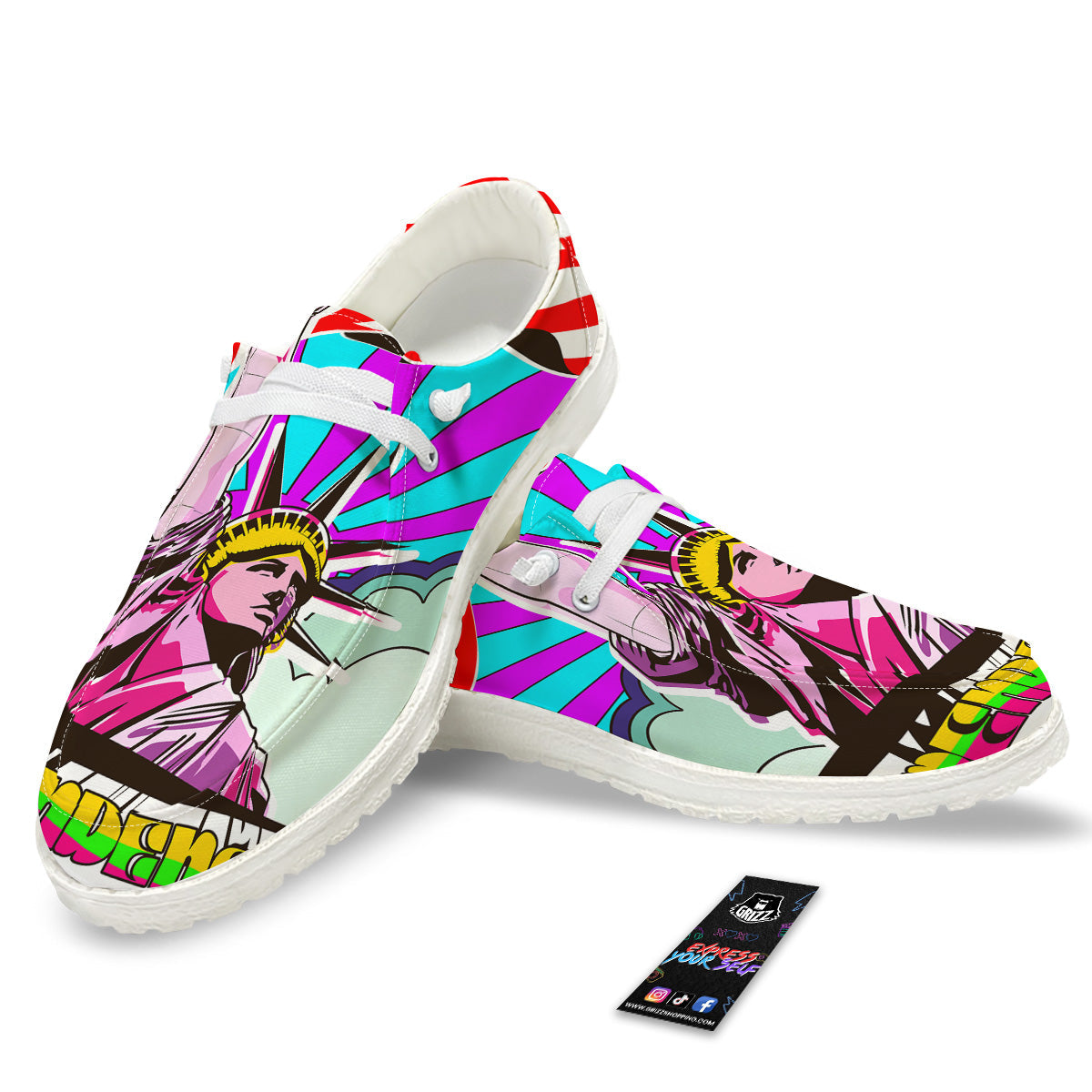 Psychedelic USA Statue of Liberty Independence Day Print White Loafers