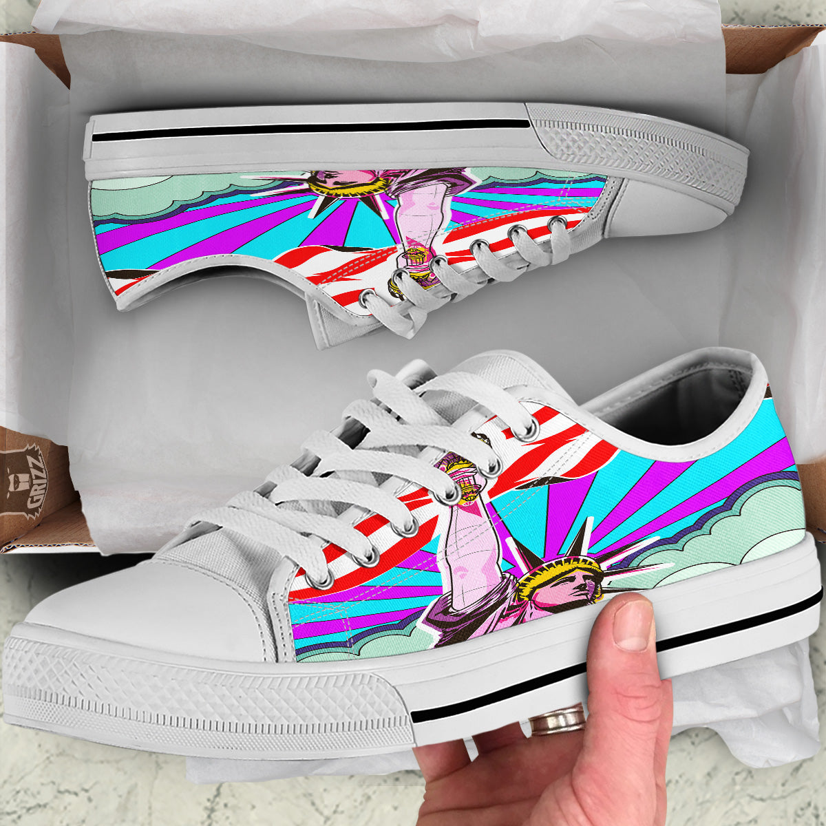 Psychedelic USA Statue of Liberty Independence Day Print White Low Top Shoes