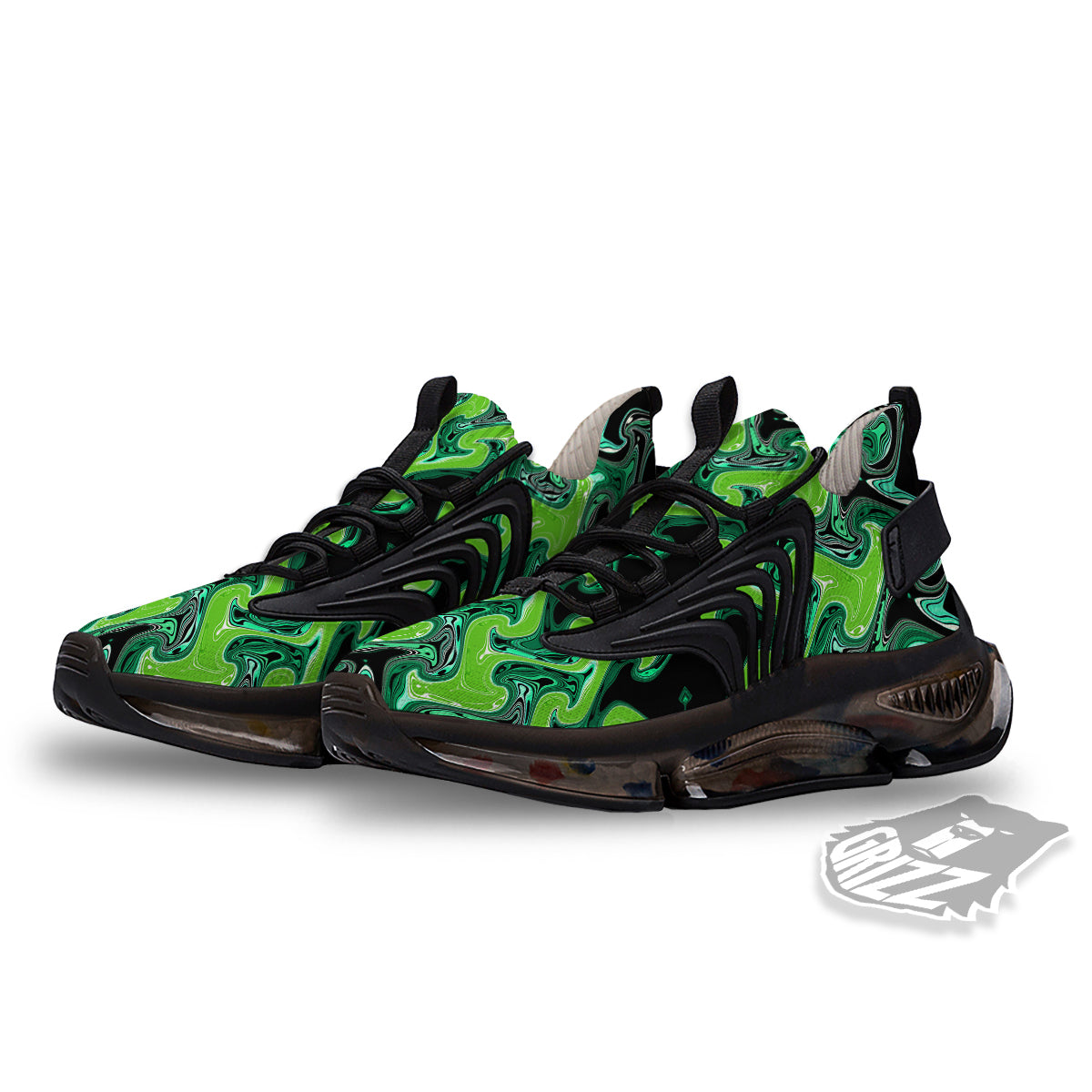 Psychedelic Wave Liquid Green Print Black Gym Shoes