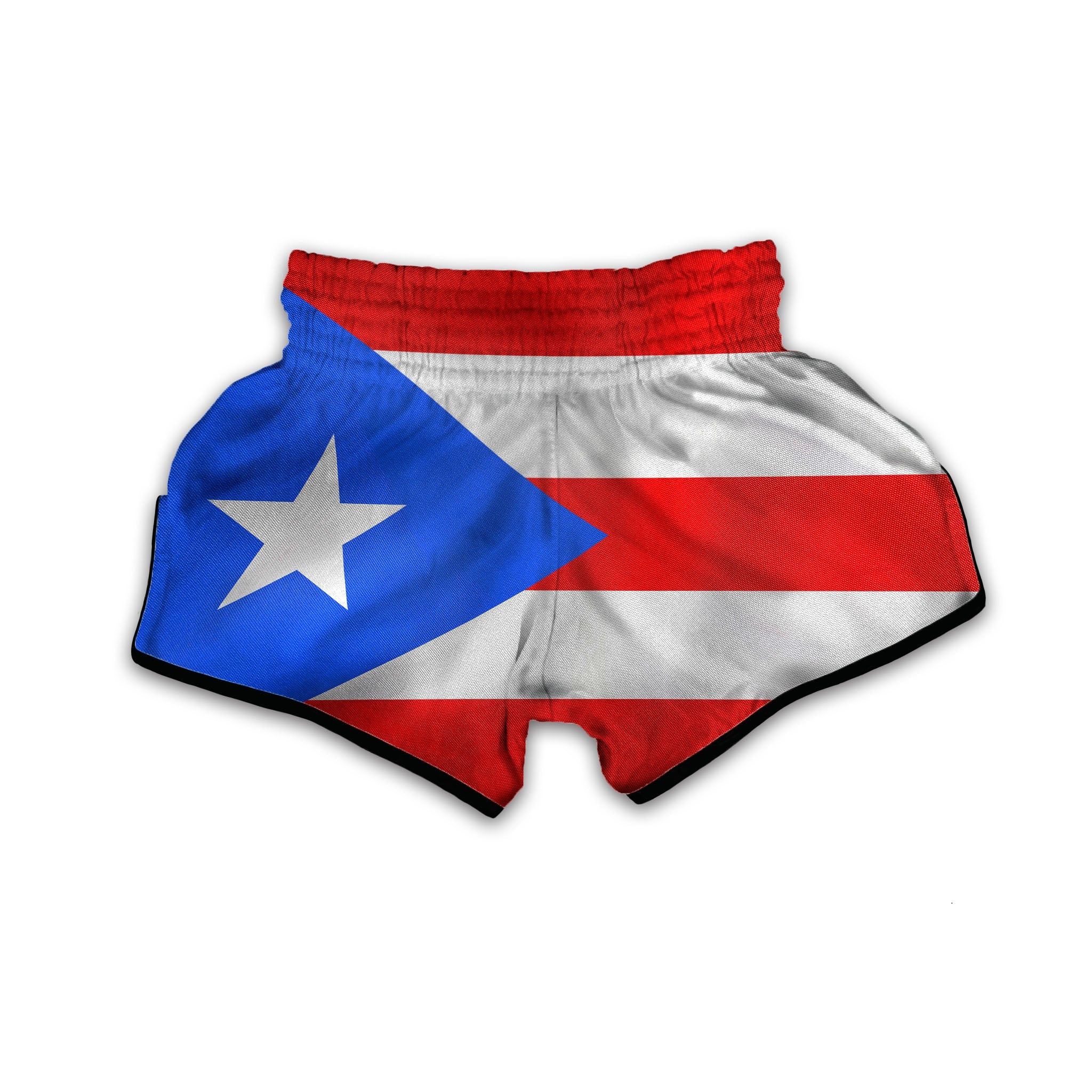 Puerto Rican Wrinkled Flag Print Muay Thai Boxing Shorts