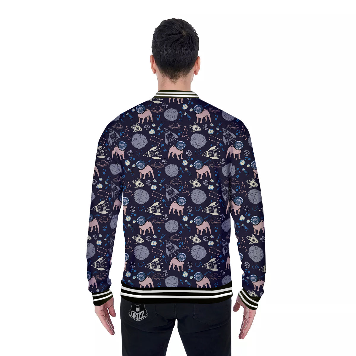 Pug And Astronaut In The Space Print Pattern Baseball Jacket