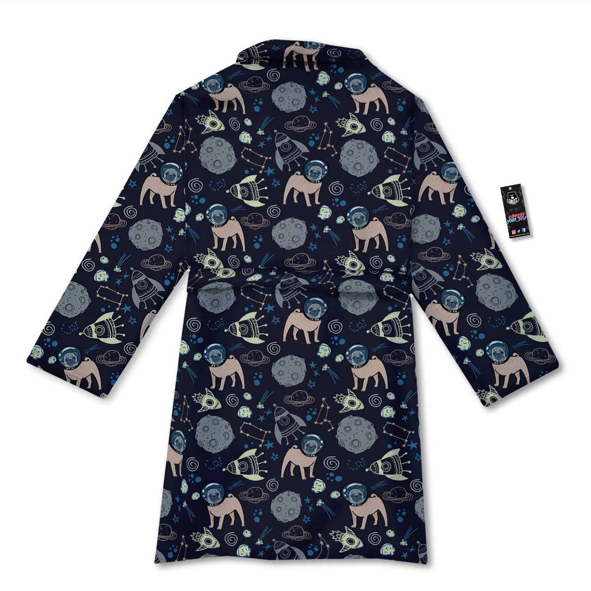 Pug And Astronaut In The Space Print Pattern Bathrobe