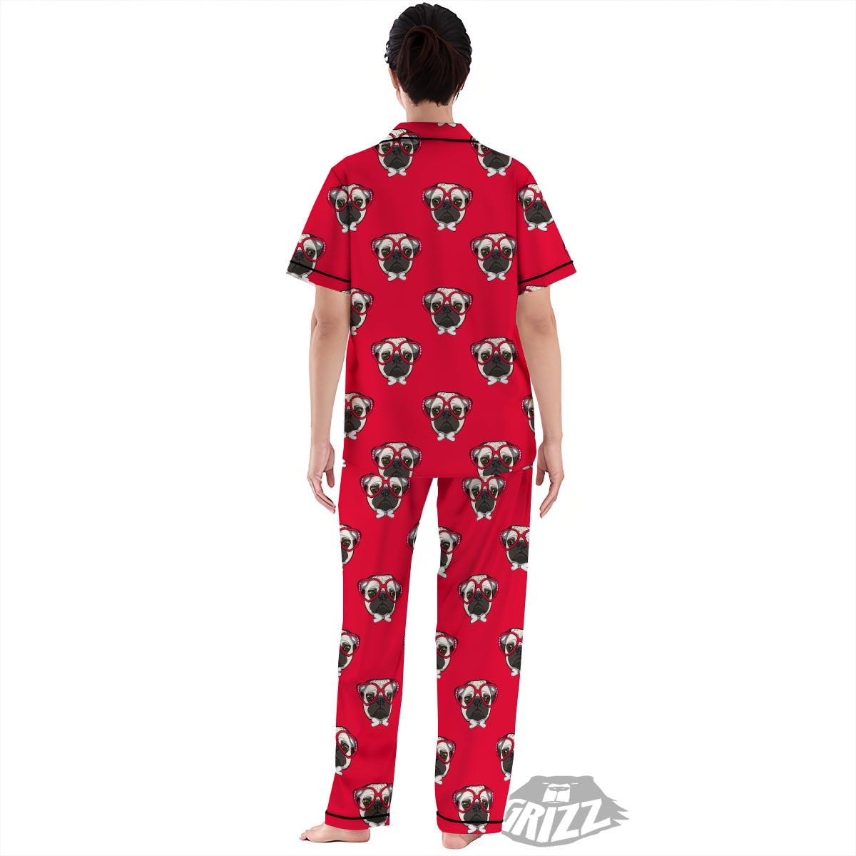 Pug Red Glasses Print Pattern Women's Pajamas Set