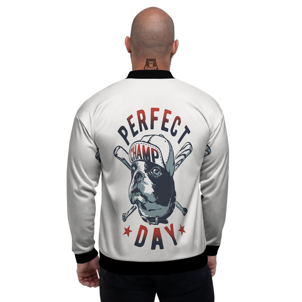 Puppy French Bulldog And Baseball Print Men's Bomber Jacket