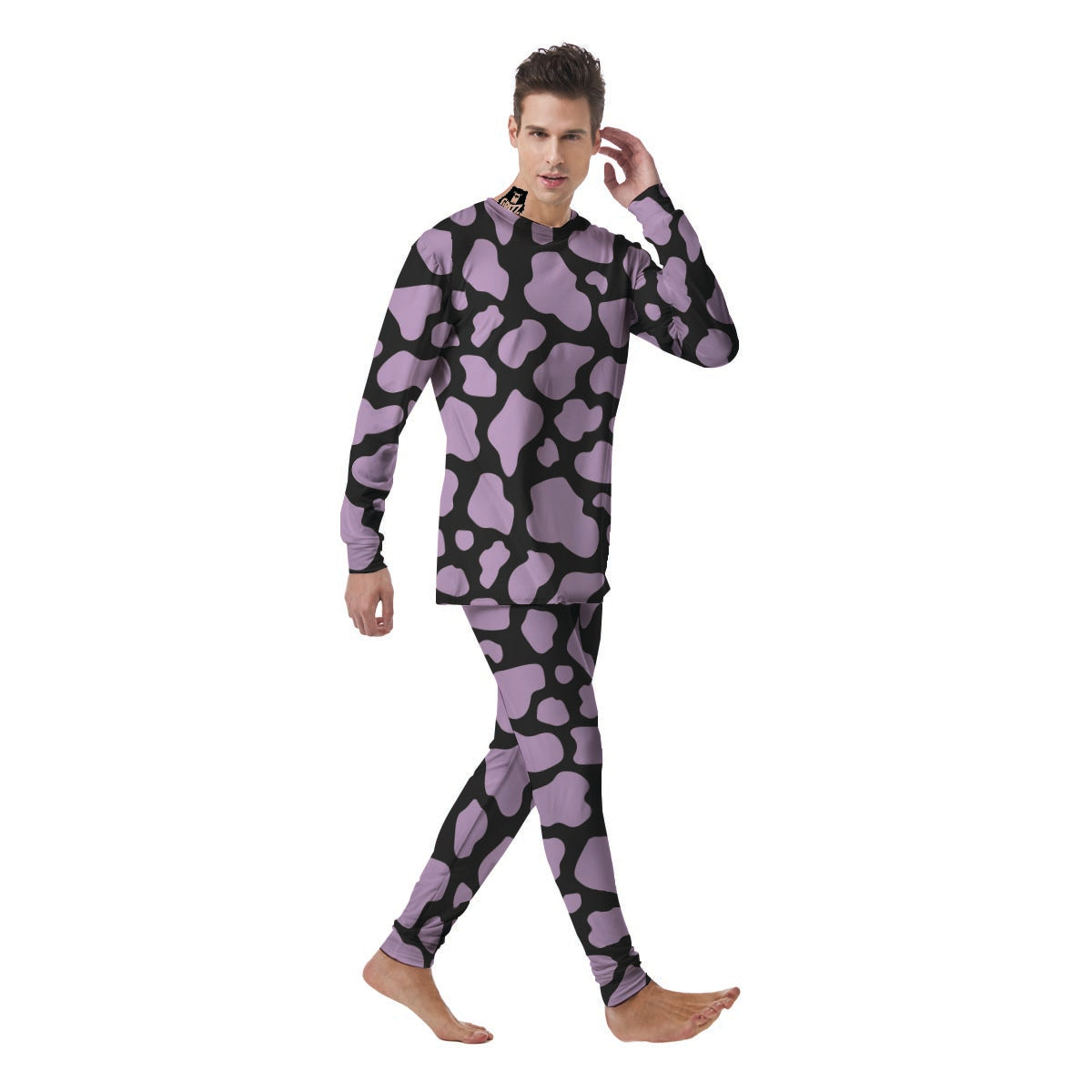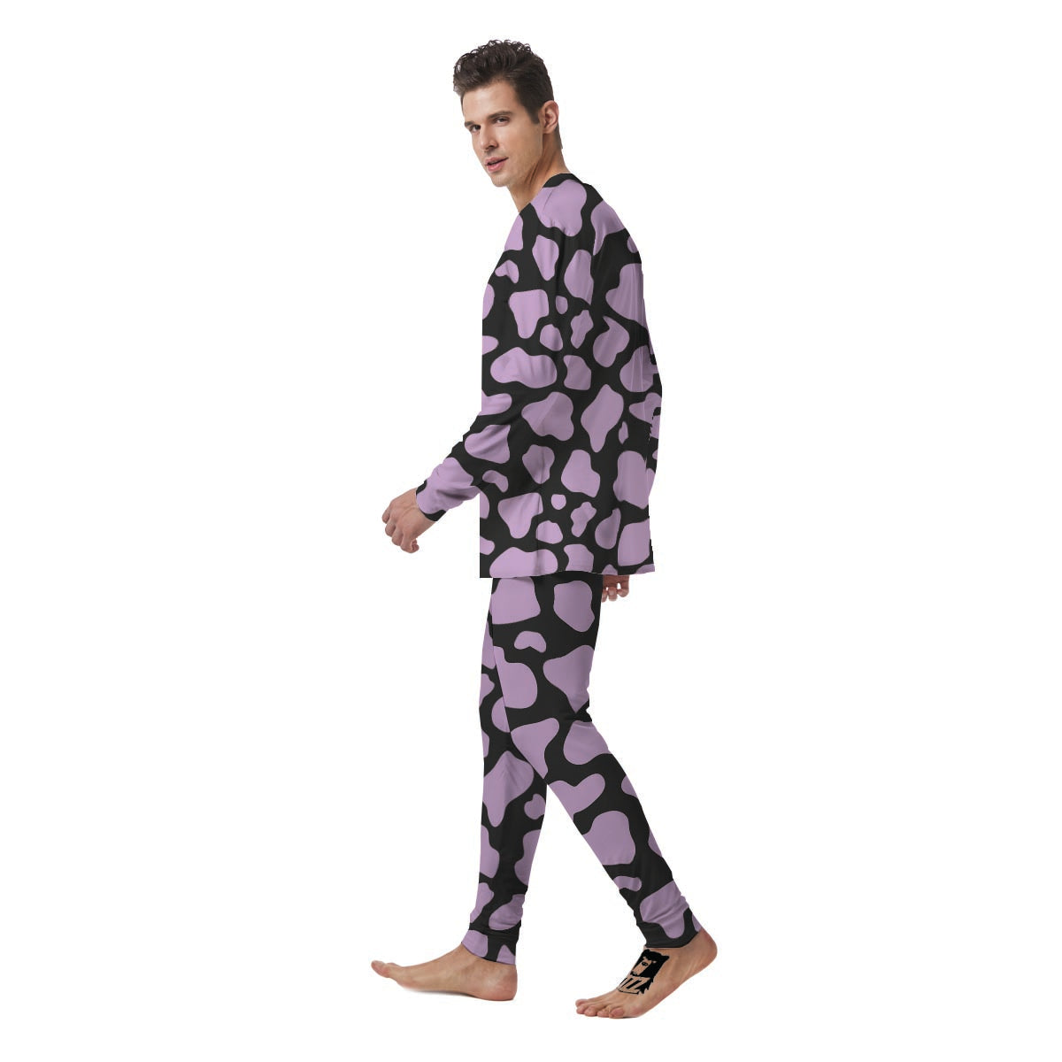 Purple And Black Cow Print Men's Pajamas