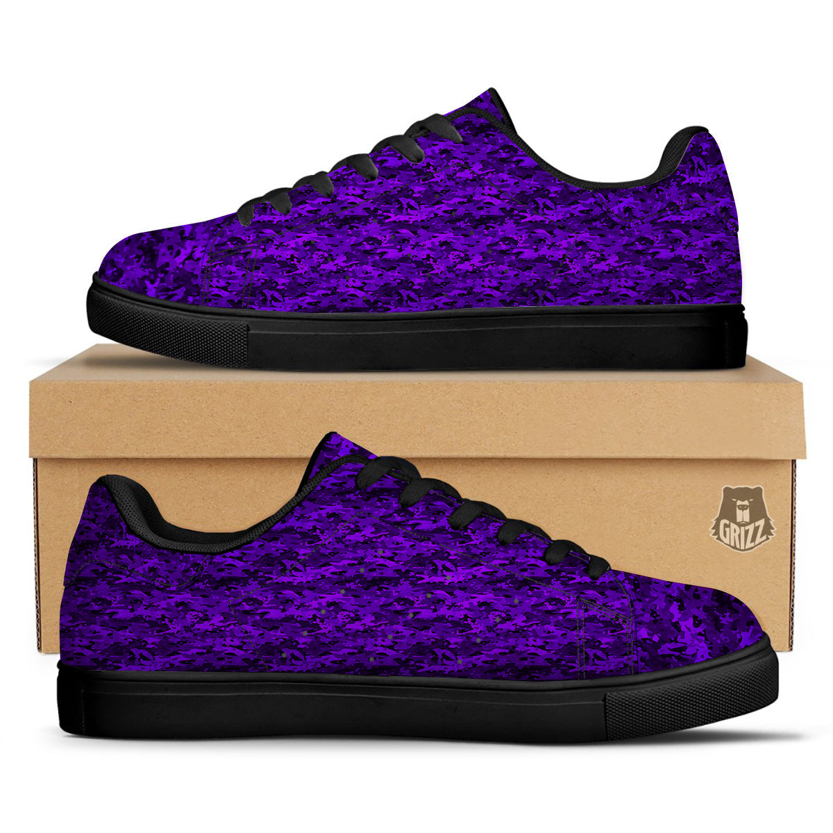 Purple Camouflage Dark Print Black Low Top Sneakers
