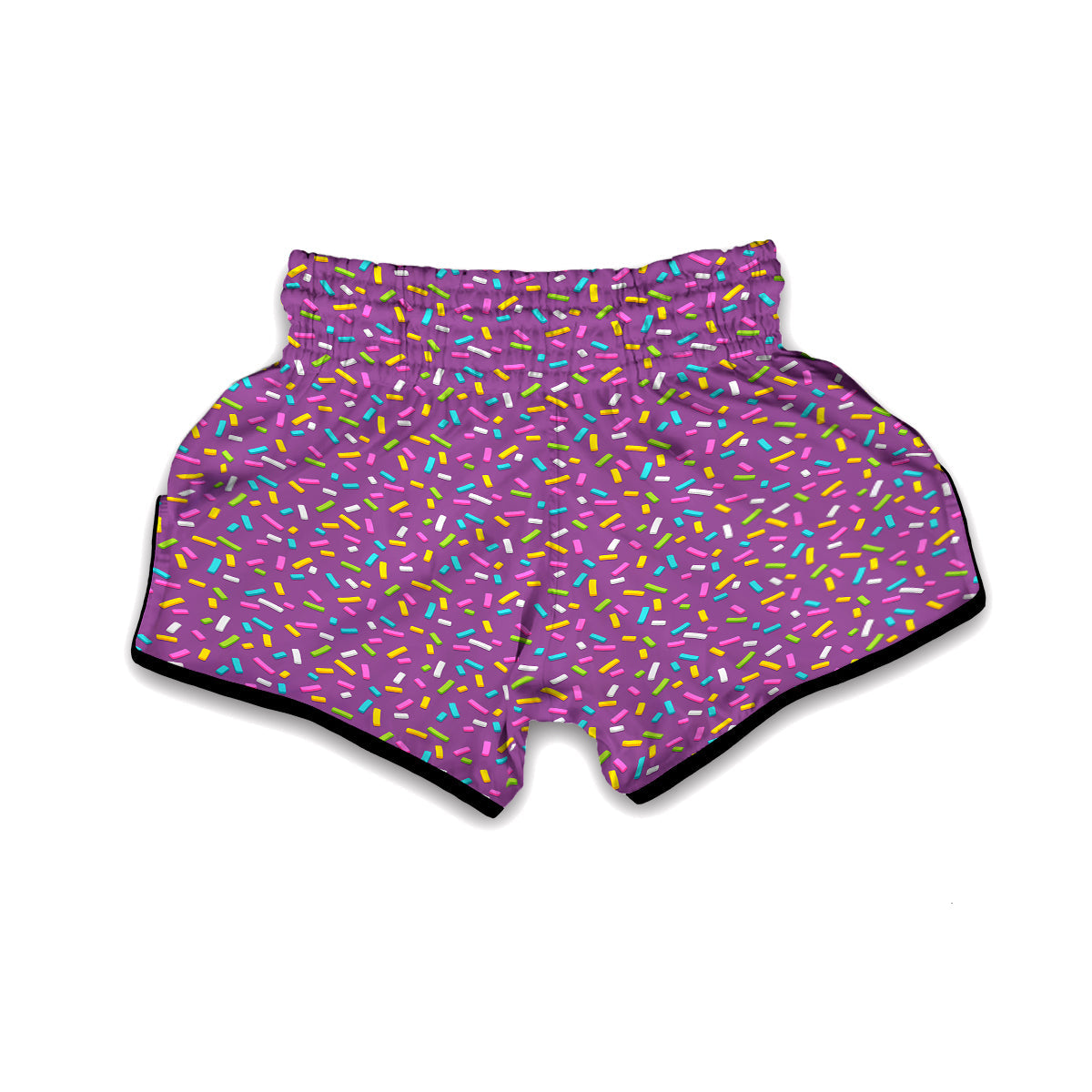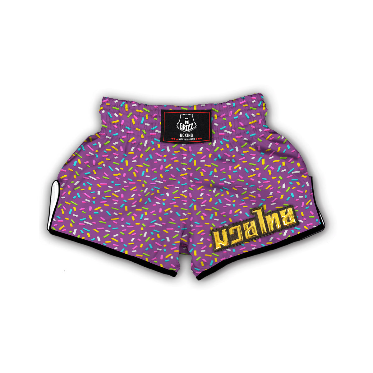 Purple Candy Sprinkles Sweet Print Pattern Muay Thai Boxing Shorts