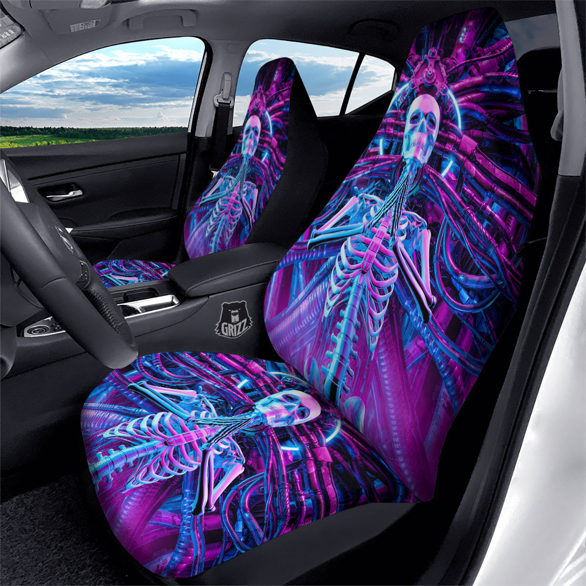 Looking for a unique car seat cover? Check out our Purple Cyber Skeleton Print Car Seat Covers at Grizzshopping. Our car seat cover are handcrafted to the highest quality standards that custom made for you Constructed with high quality polyester micro-fiber fabric for maximum durability and comfort.