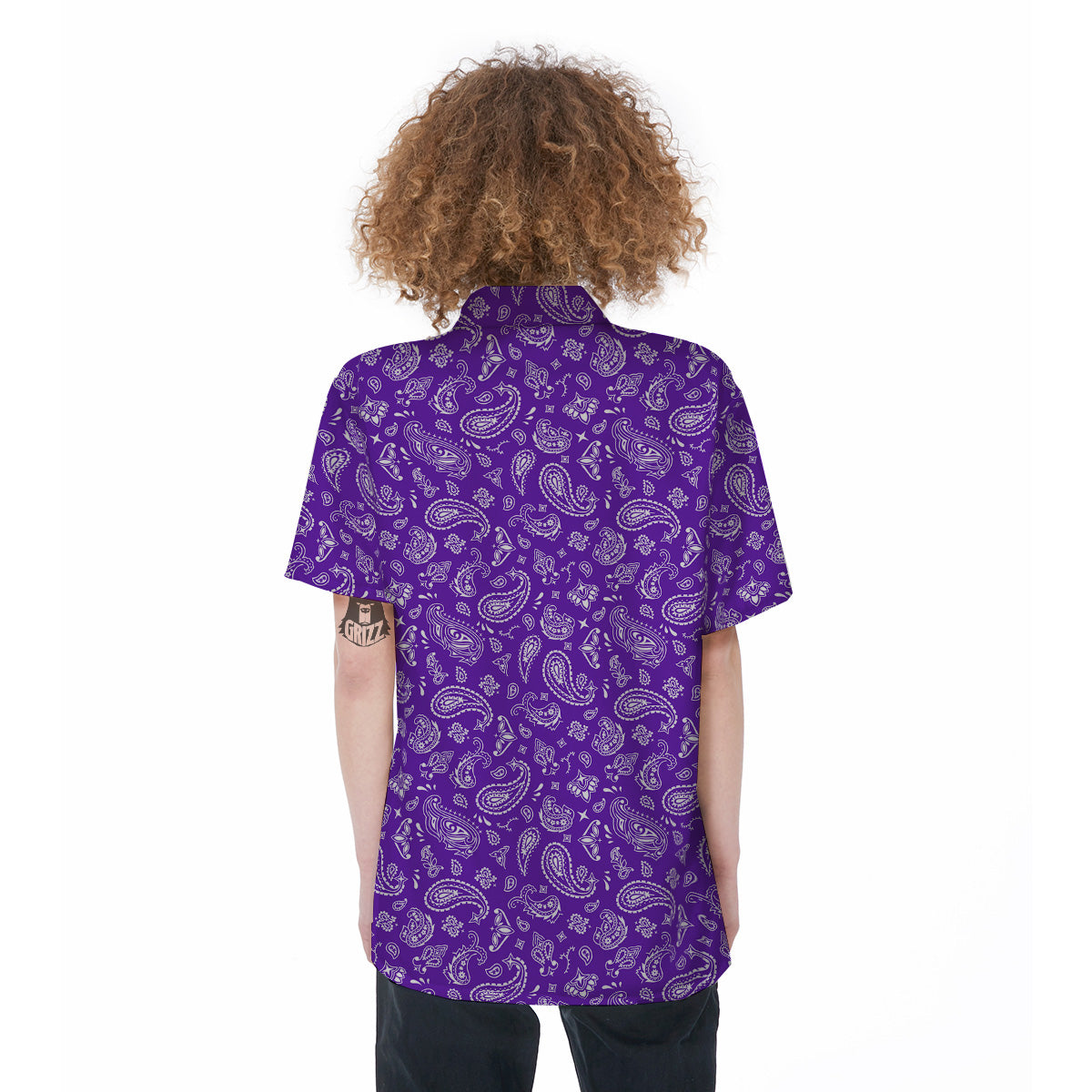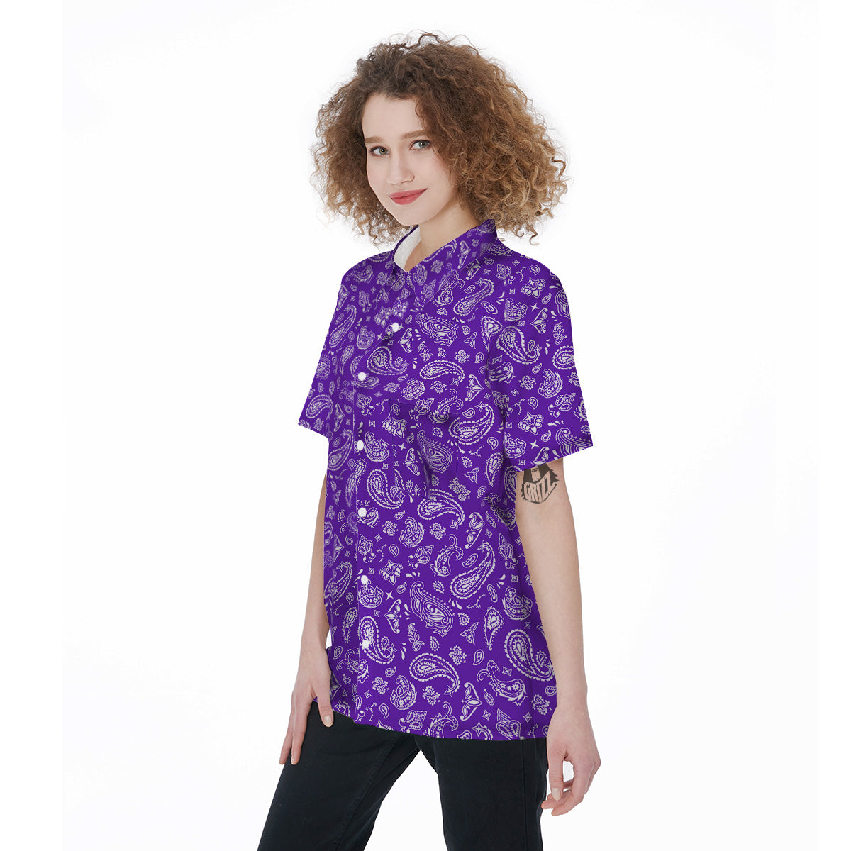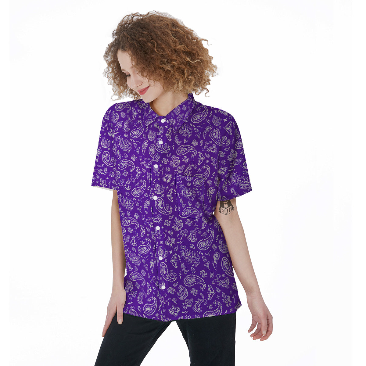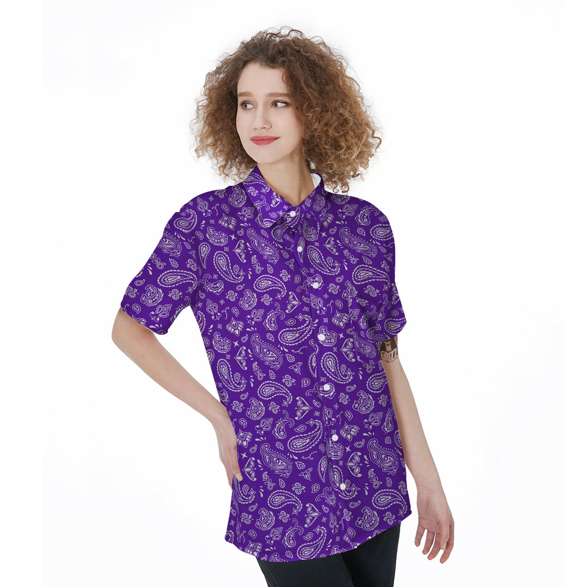Purple Paisley Bandana Print Women's Short Sleeve Shirts