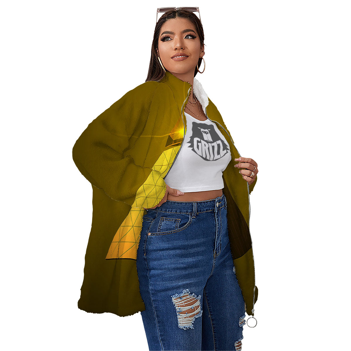 Looking for a unique Jacket? Check out our Pyramid Golden Print Women's Sherpa Jacket at Grizzshopping. Our jacket are handcrafted to the highest quality standards that custom made for you