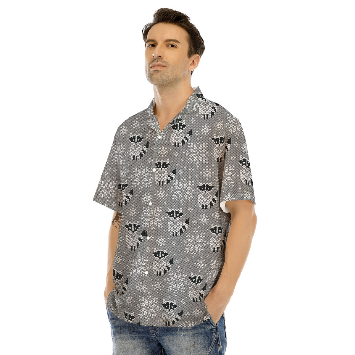 Raccoon Knitted Print Pattern Men's Hawaiian Shirt