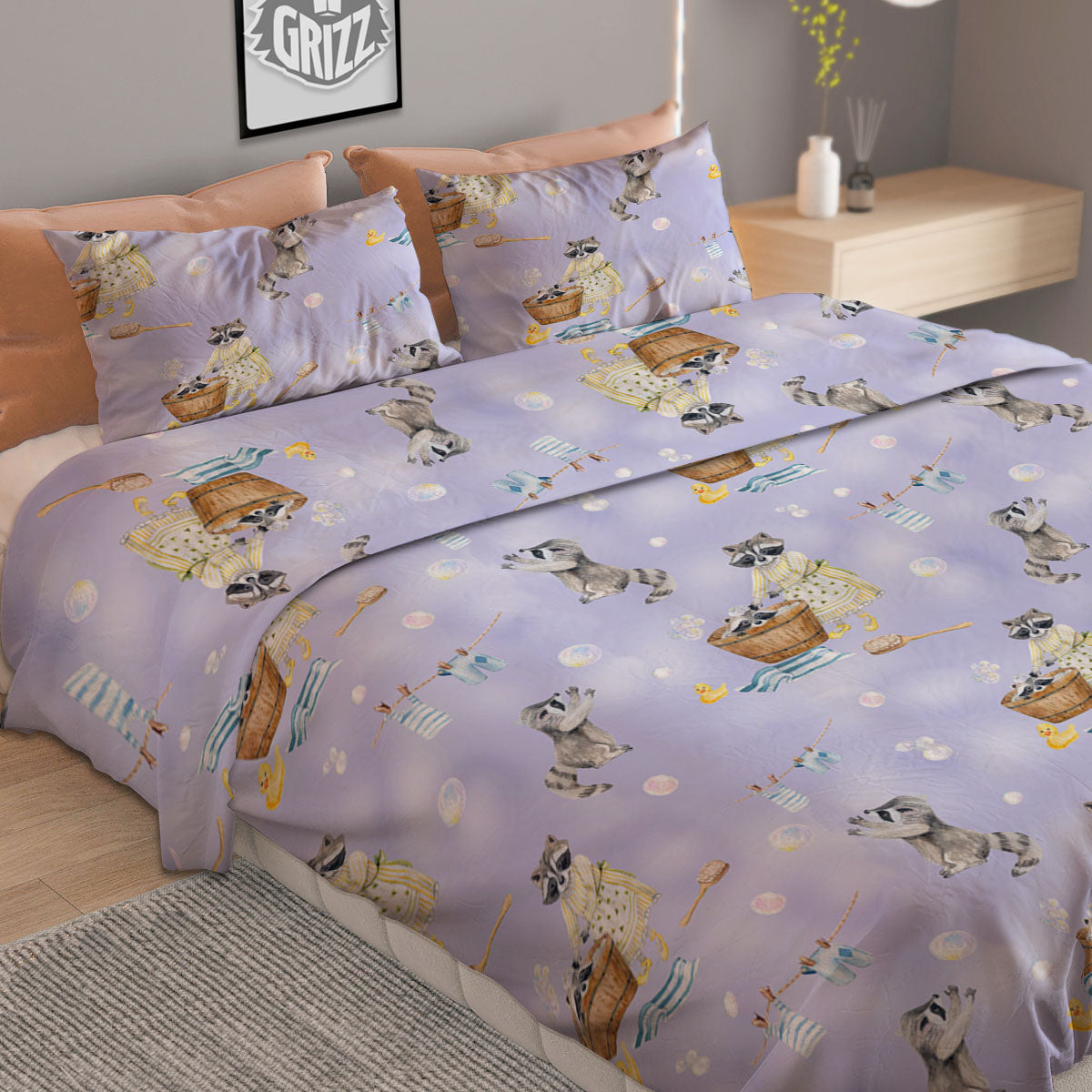 Raccoon Watercolor Print Pattern Duvet Cover Bedding Set