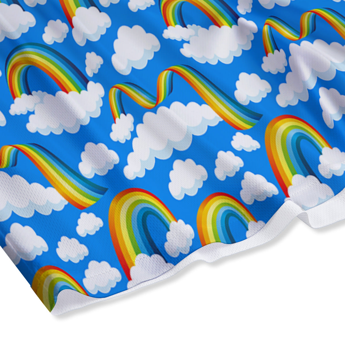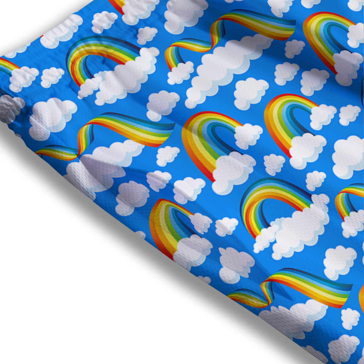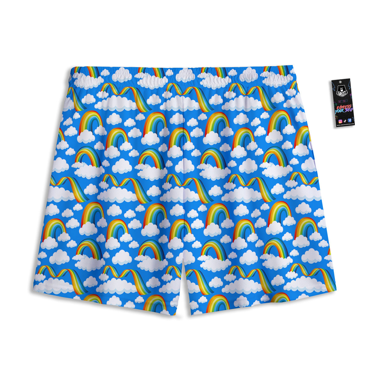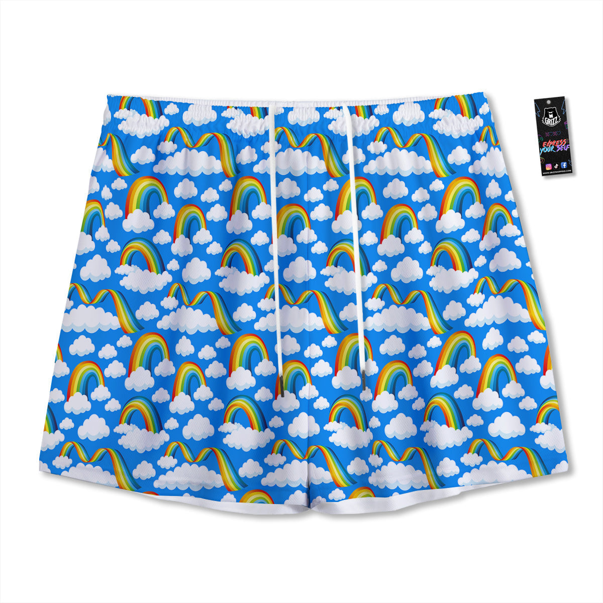 Rainbow And Clouds Blue Print Pattern Mesh Shorts