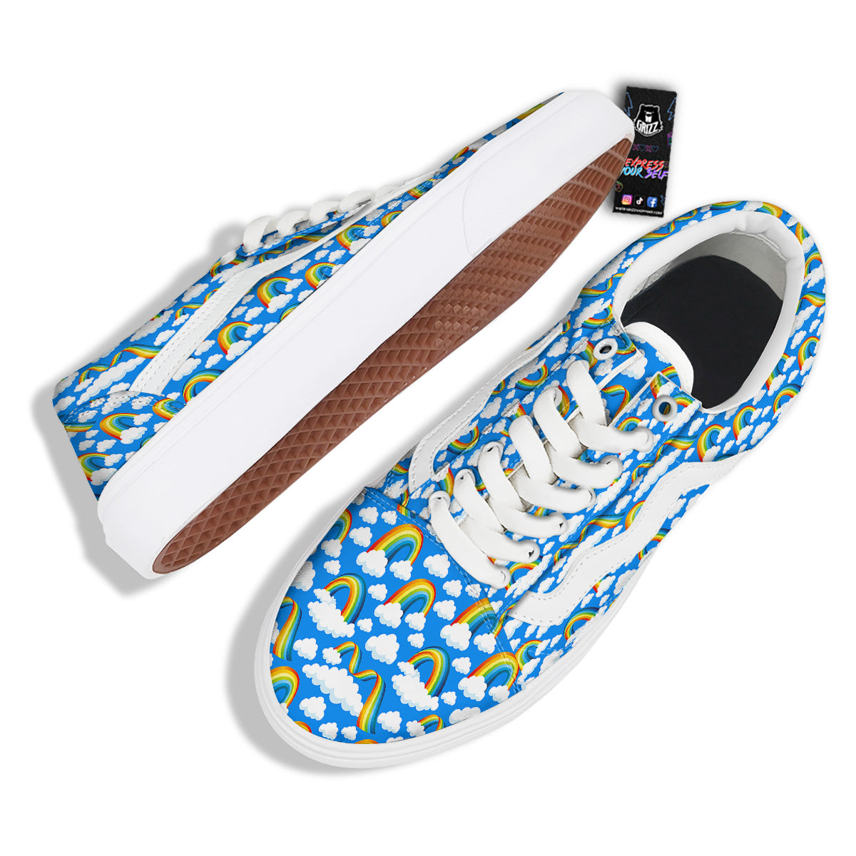 Rainbow And Clouds Blue Print Pattern Skate Shoes