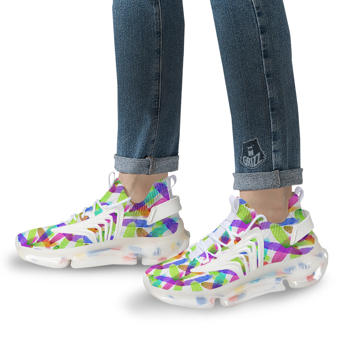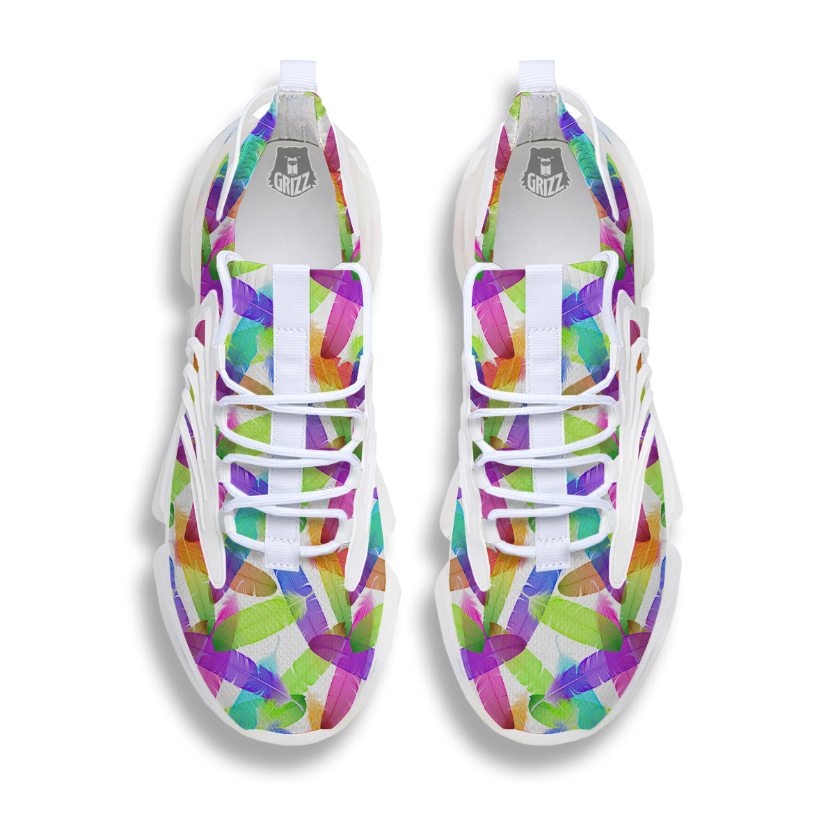 Rainbow Color Feather Print Pattern White Gym Shoes
