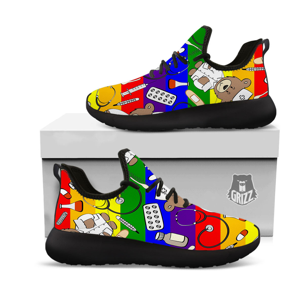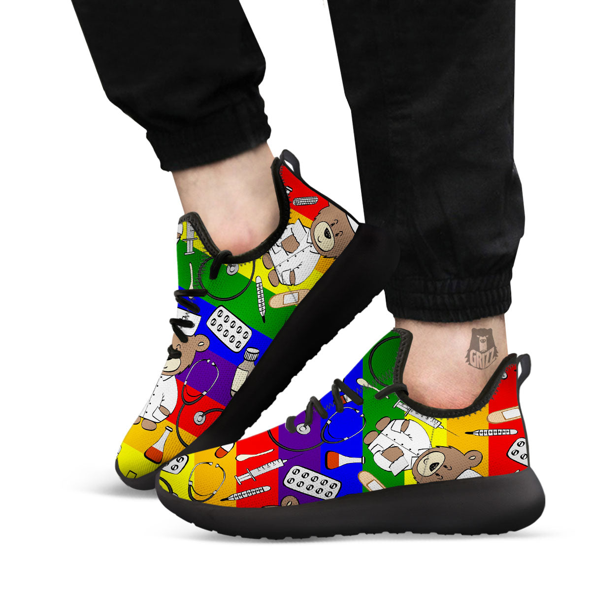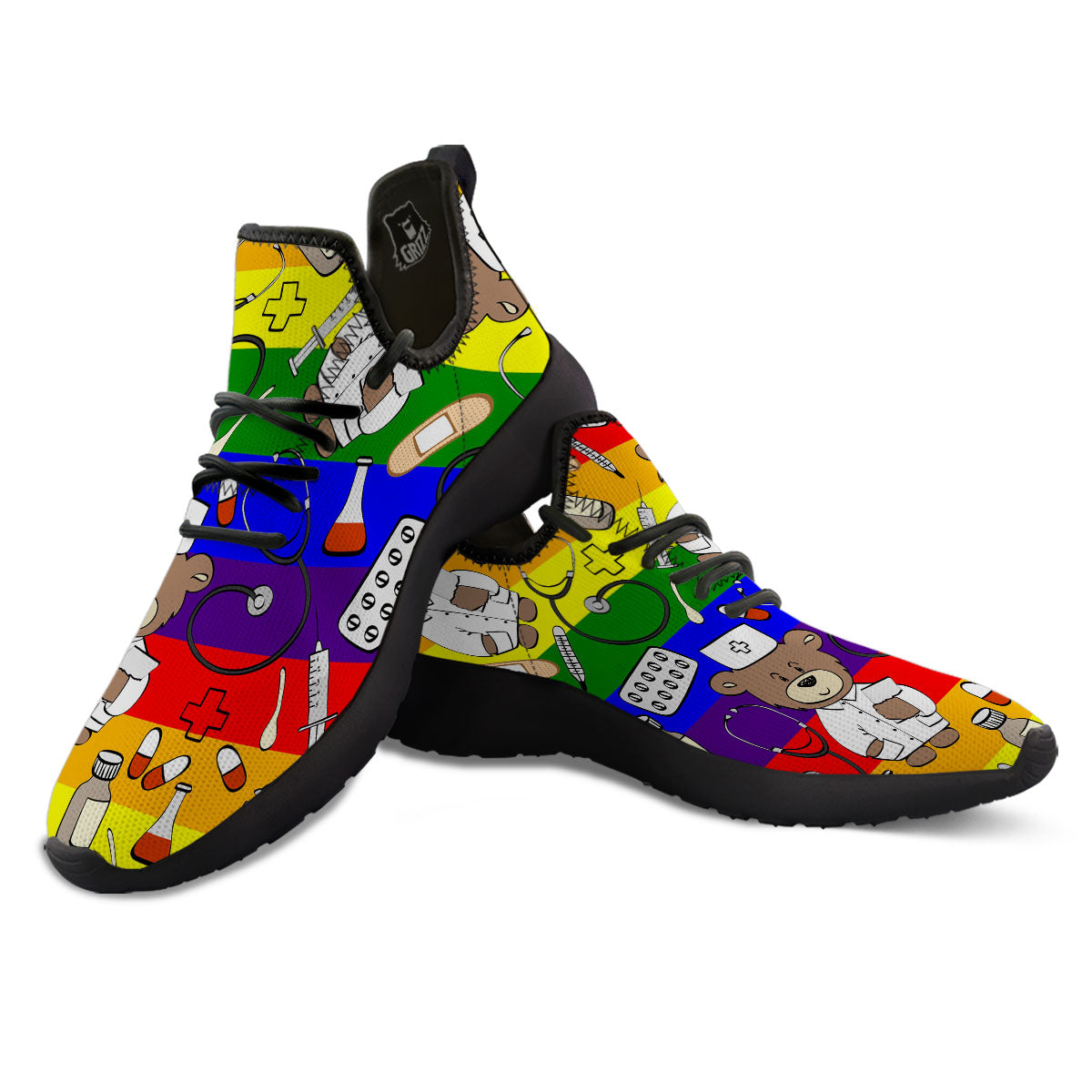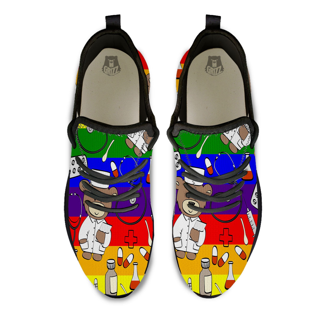 Rainbow Color LGBT Teddy Bear Nurse Black Athletic Shoes