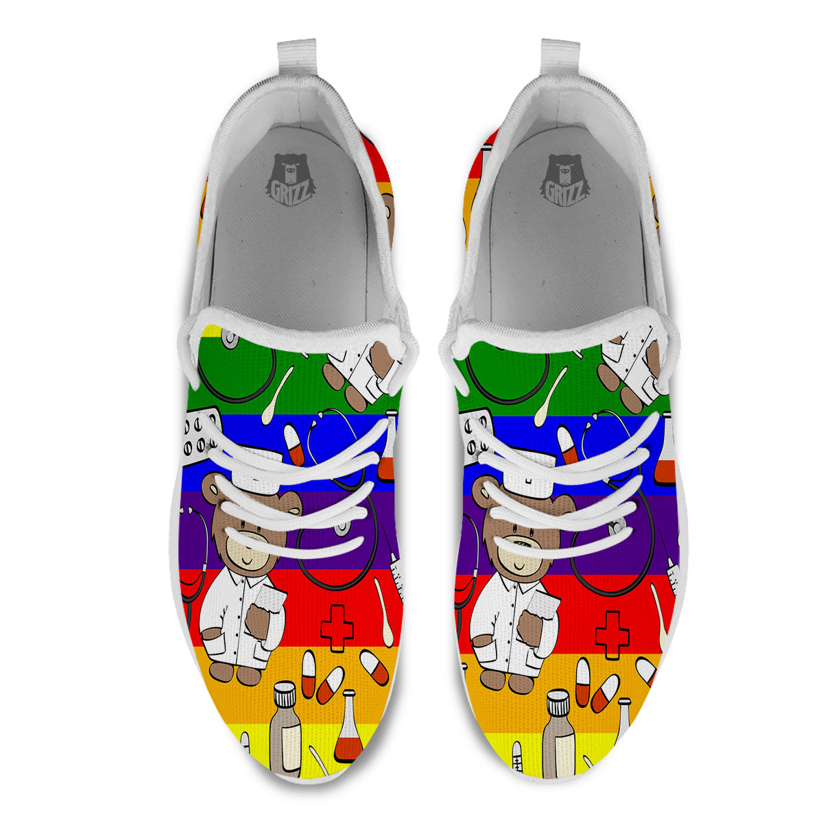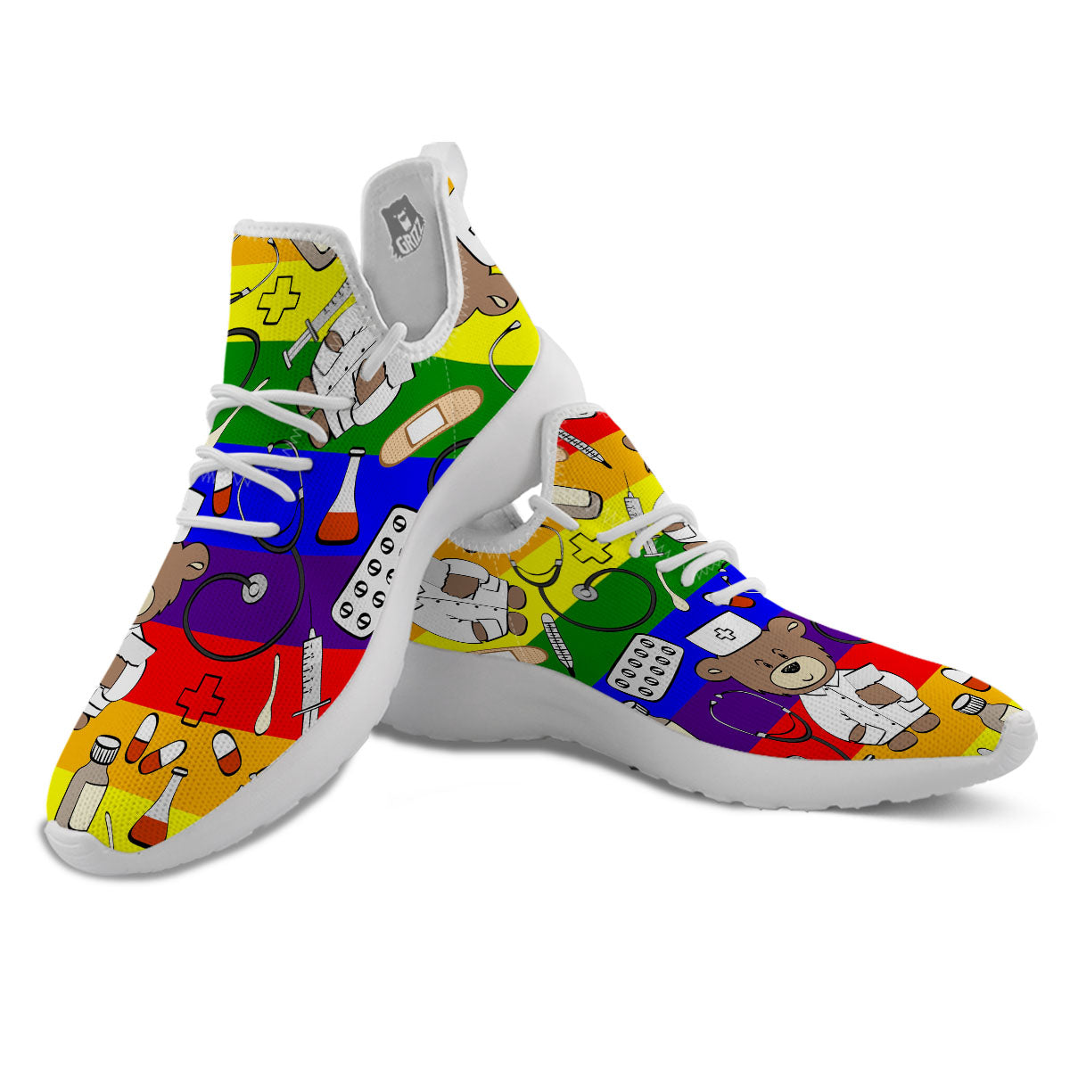 Rainbow Color LGBT Teddy Bear Nurse White Athletic Shoes
